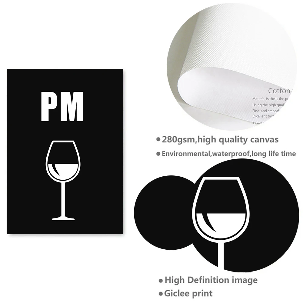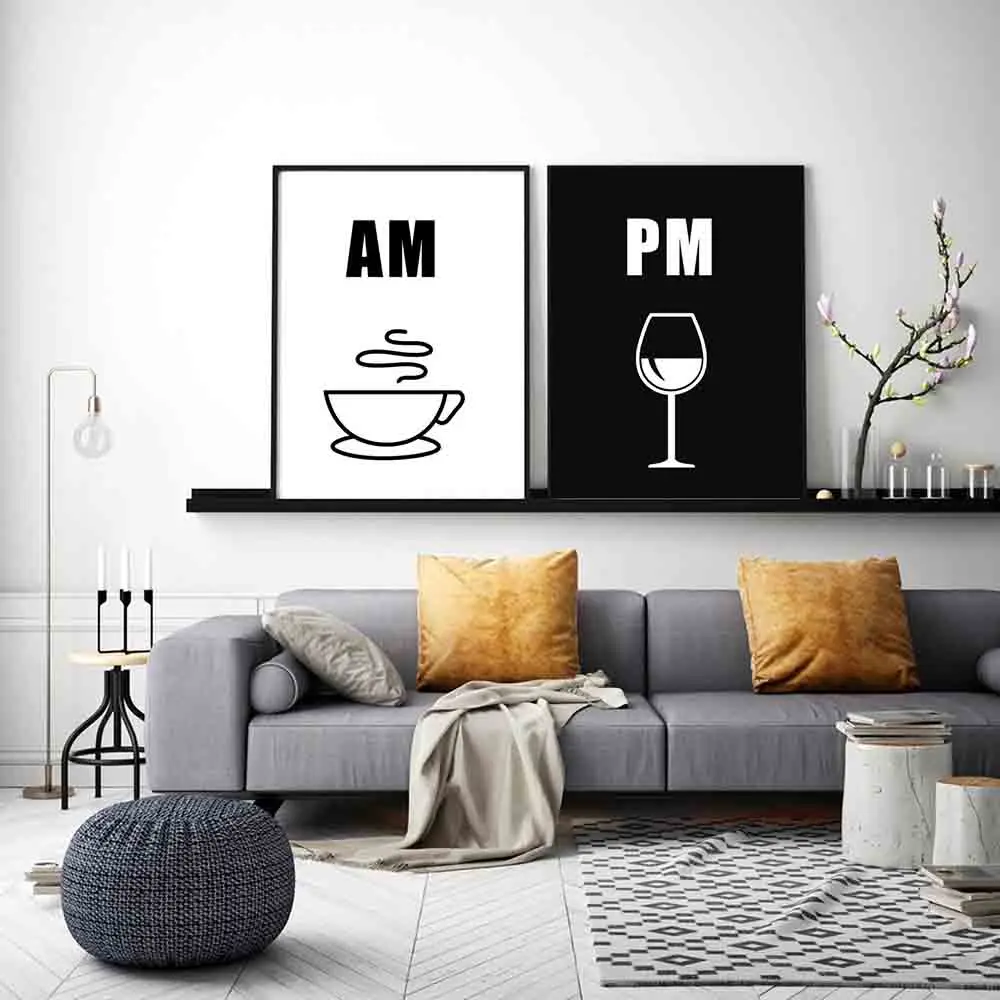 Плакат AM PM с изображением чая, кофе, вина, черно-белый креативный трендовый цитатный кухонный настенный художественный Рисунок на холсте Современные картины комната Dec