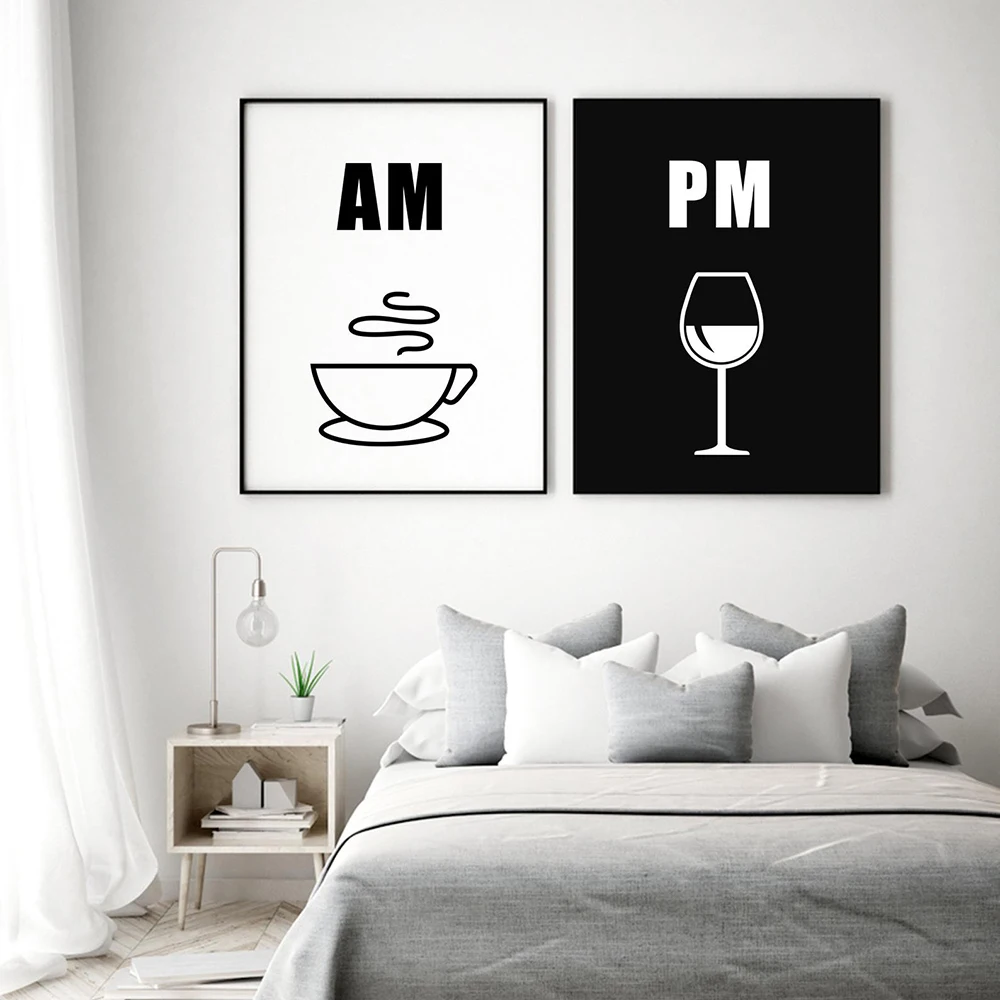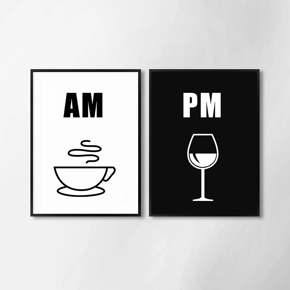 AM & PM Чай Кофе Вино Постер Черный Белый креативный тренд цитата кухня стены искусства Печать холст живопись Современные Фотографии Декор комнаты