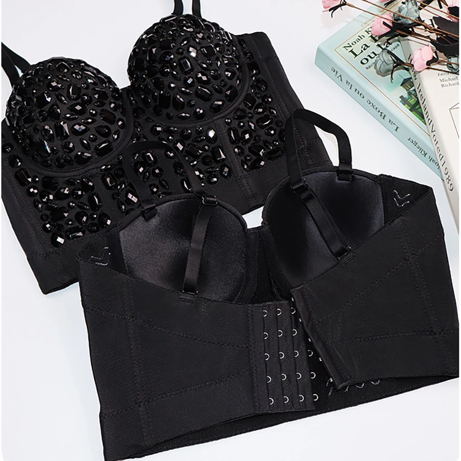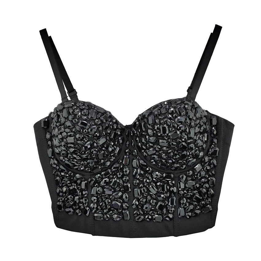 Укороченный акриловый топ с бисером, для ночного клуба, для осени, сексуальный топ, бюстье с пуш-ап