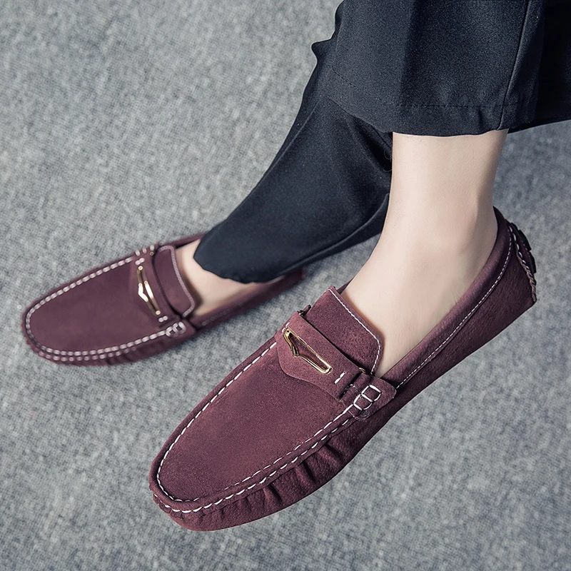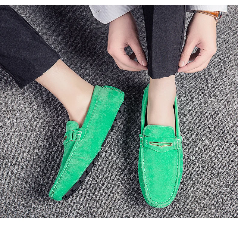 Мужские замшевые мокасины на плоской подошве, Брендовые повседневные лоферы из коровьей кожи, обувь для вождения, большой размер 38-48, 2020