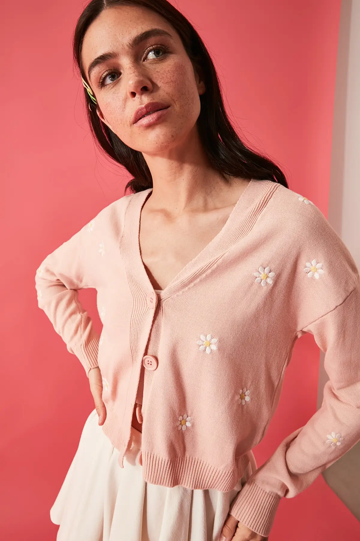 Трендовая трикотажная одежда с вышивкой кардиган TWOAW21HI0653