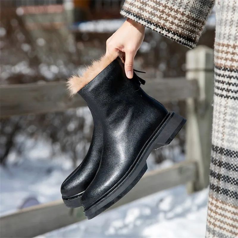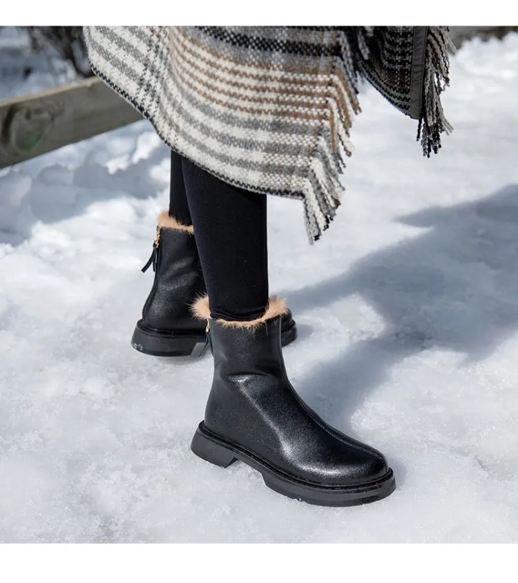 2020 г. Зимние женские ботинки теплые зимние ботинки на плоской подошве с круглым носком и молнией сзади полусапожки из натуральной кожи женская обувь больших размеров 33-43