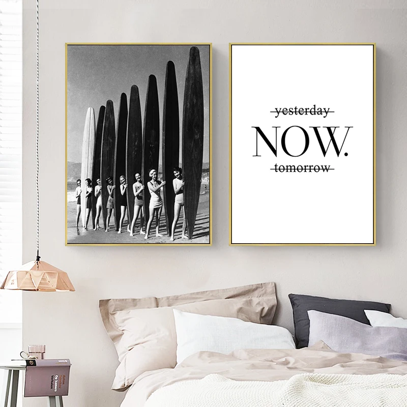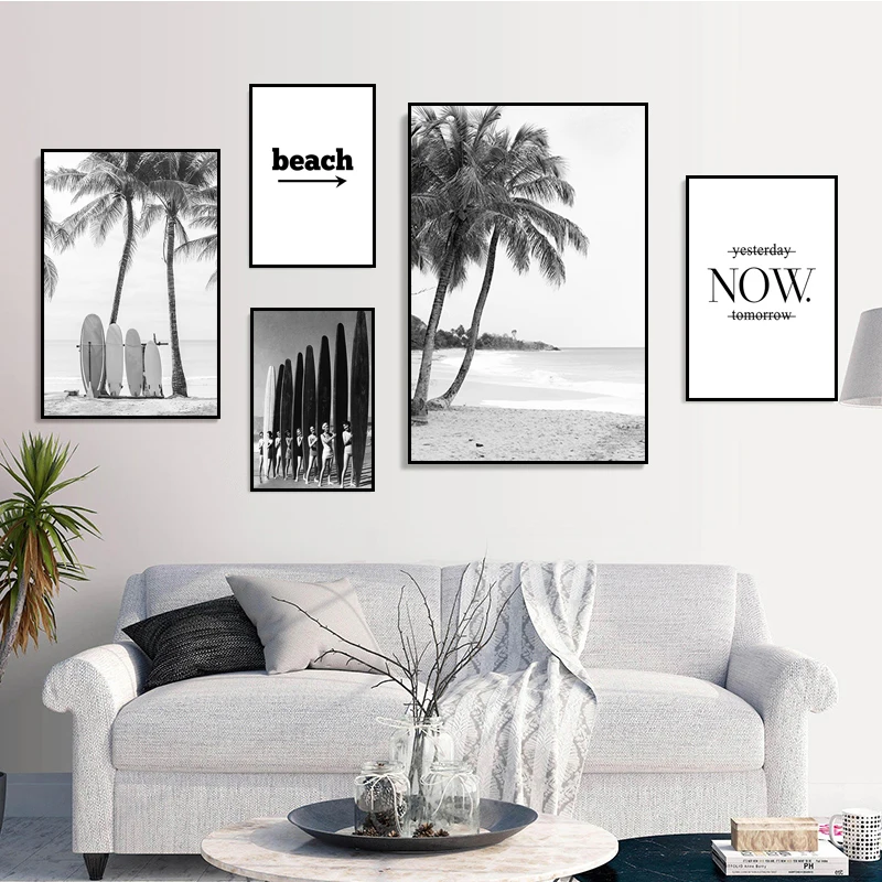Черно-белая фотография холст картина доски для серфинга плакаты и принты винтажные скандинавские настенные картины для гостиной HD0044