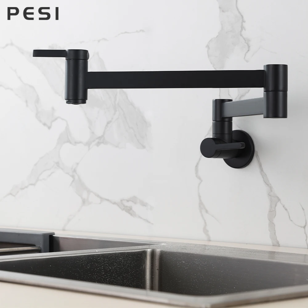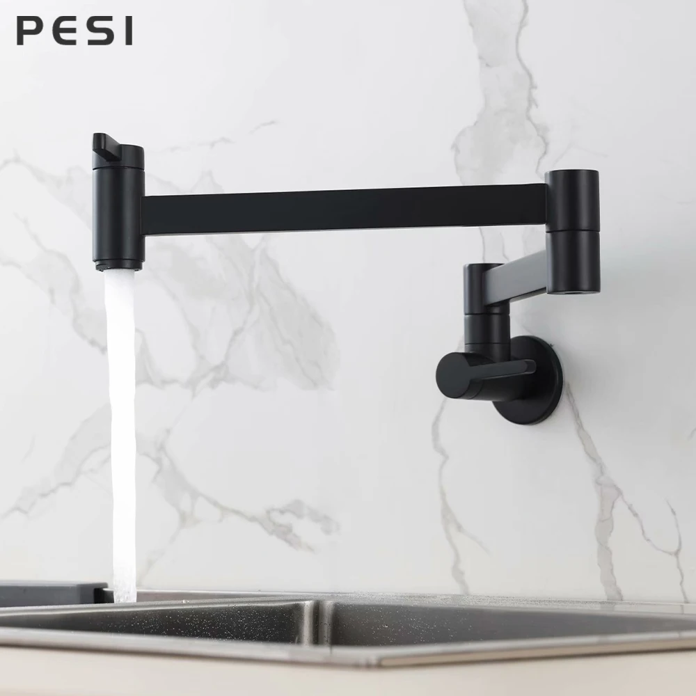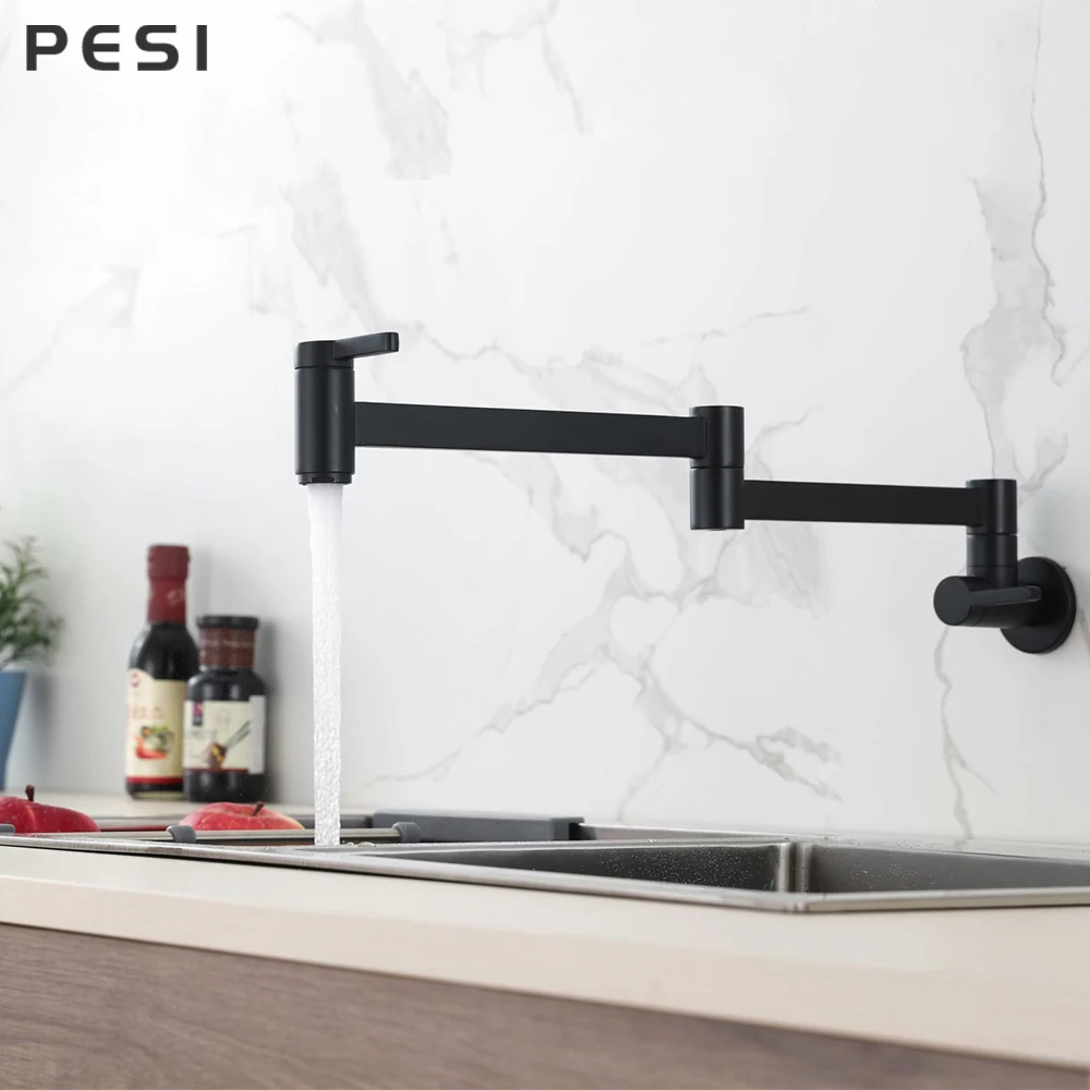 Хромированный никель, черный латунный наполнитель для кастрюль, настенный кран для кухни, одиночный холодный кран с одним отверстием, Вращающийся складной носик