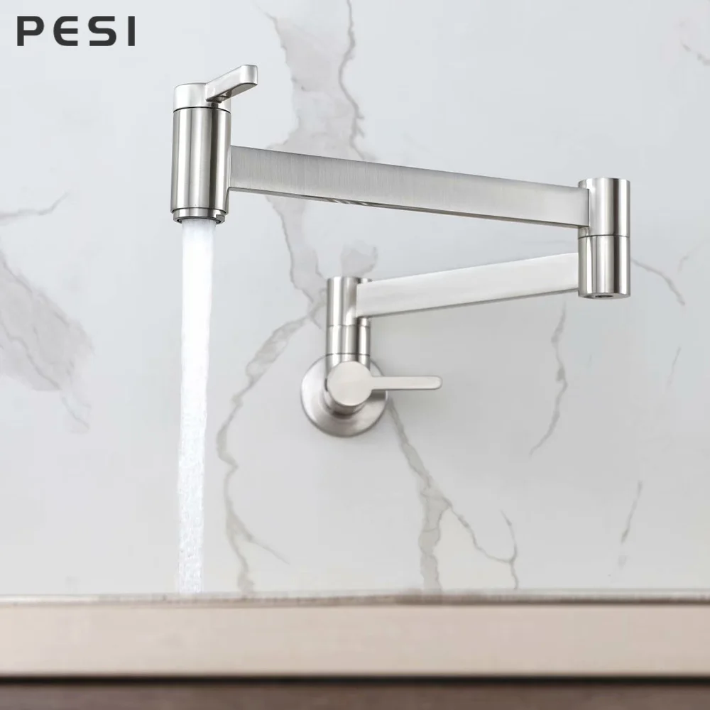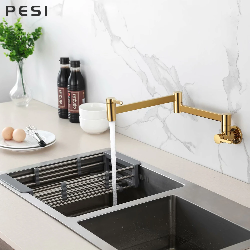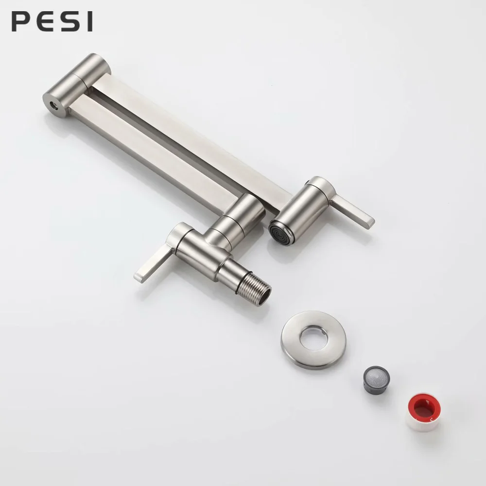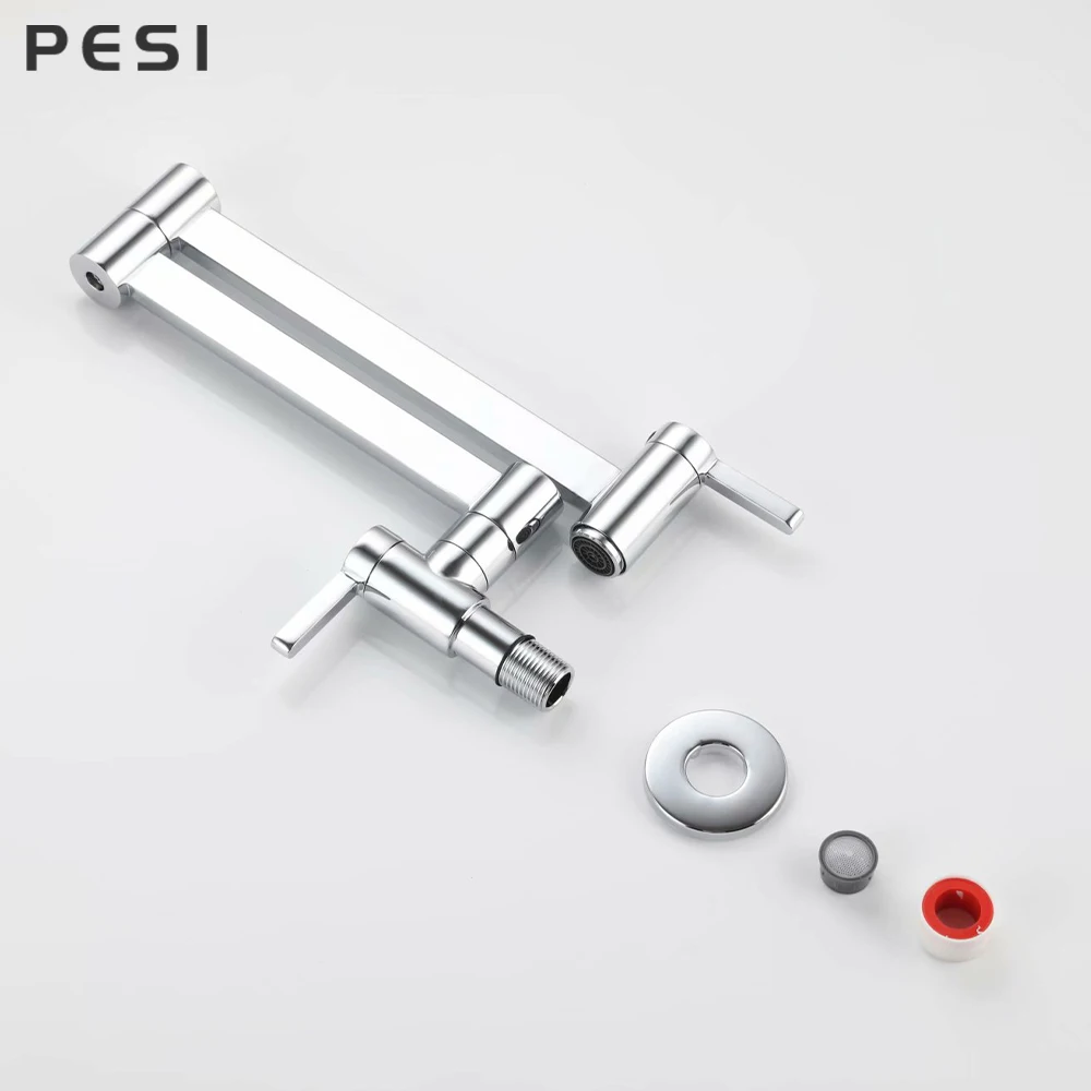 Хромированный никель, черный латунный наполнитель для кастрюль, настенный кран для кухни, одиночный холодный кран с одним отверстием, Вращающийся складной носик