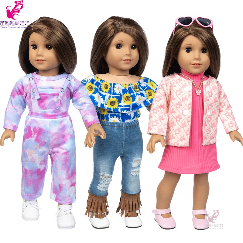 Одежда для кукол 18 дюймов, джинсовые штаны, комбинезон, Одежда для кукол, пальто, розовое платье, новогодний подарок для маленьких девочек