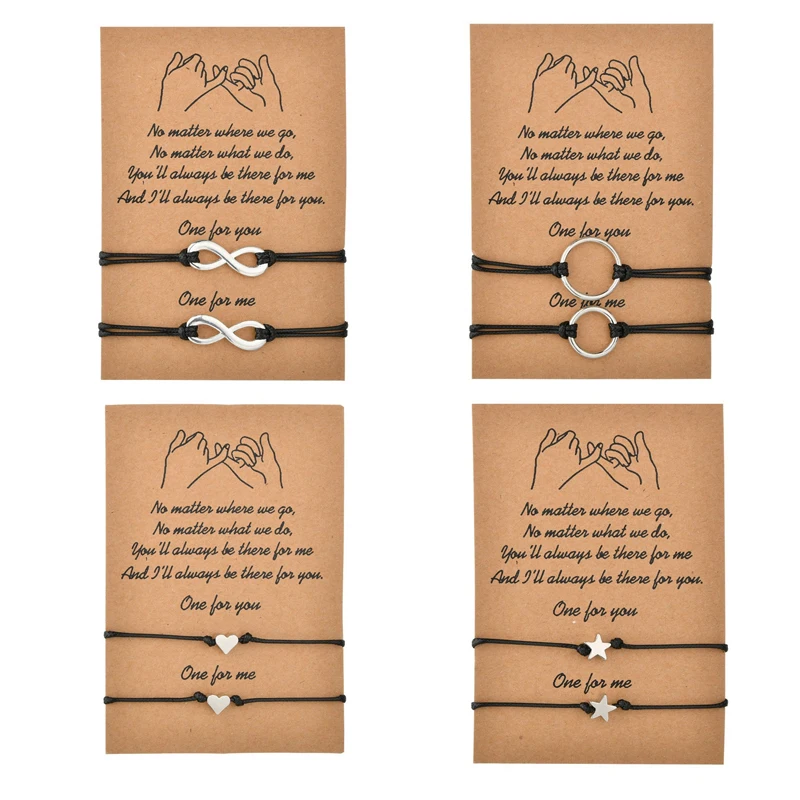 Новинка 2020, браслет с круглым шнурком для вас, регулируемый браслет для визиток, 2 шт.компл., браслет со звездами, сердцами, ювелирные изделия