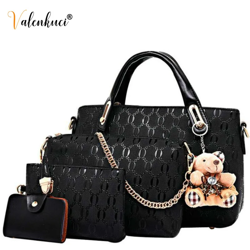 Набор сумочек ValenKuci из искусственной кожи для женщин, модный дизайнерский саквояж на плечо, винтажный мессенджер черного цвета