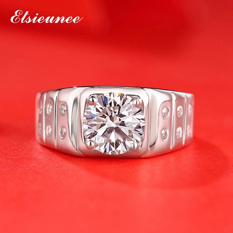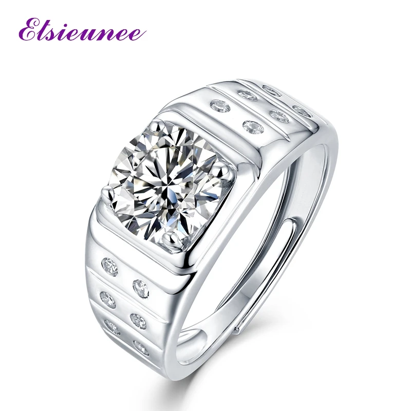 ELSIEUNEE Классический 925 пробы серебро 2ct круглой огранки муассанит обручальное кольцо заниматься Для мужчин t кольца для Для мужчин пара палец, хорошее ювелирное изделие