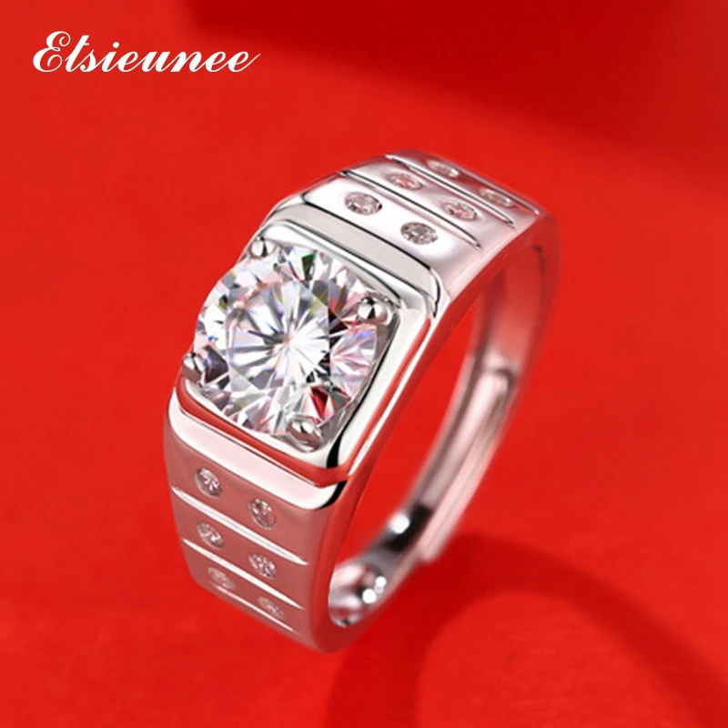 Кольцо ELSIEUNEE, классическое, 925 пробы, серебро, 2ct, с круглым вырезом, Moissanite, обручальное, для мужчин, t, кольца для пары, ювелирные изделия