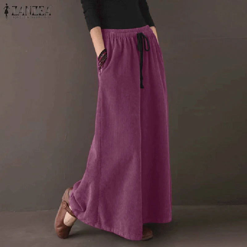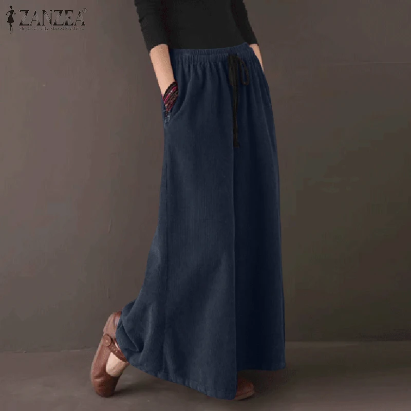 Кафтан вельветовые брюки женские широкие брюки ZANZEA 2022 повседневные брюки на шнуровке Палаццо Женские однотонные с резьбой оверсайз