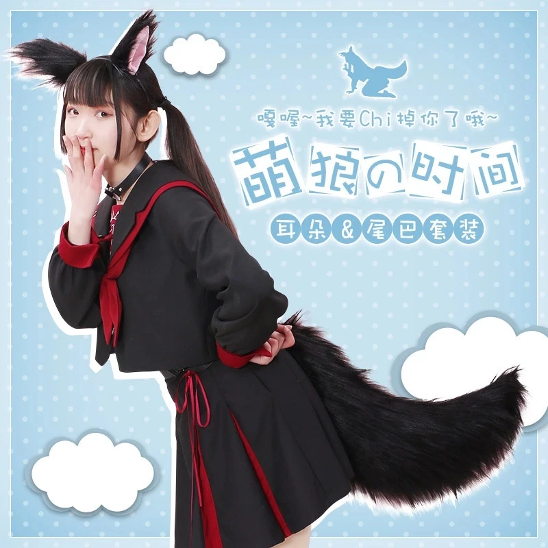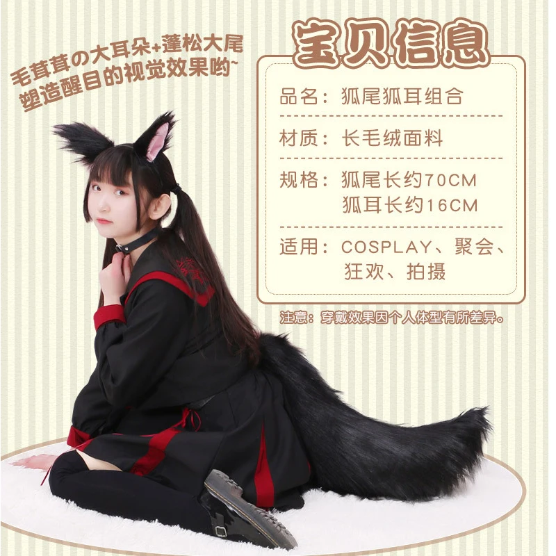 Реквизит хвост из волчьих лисьих ушей набор Плюшевые Пушистые кошач...