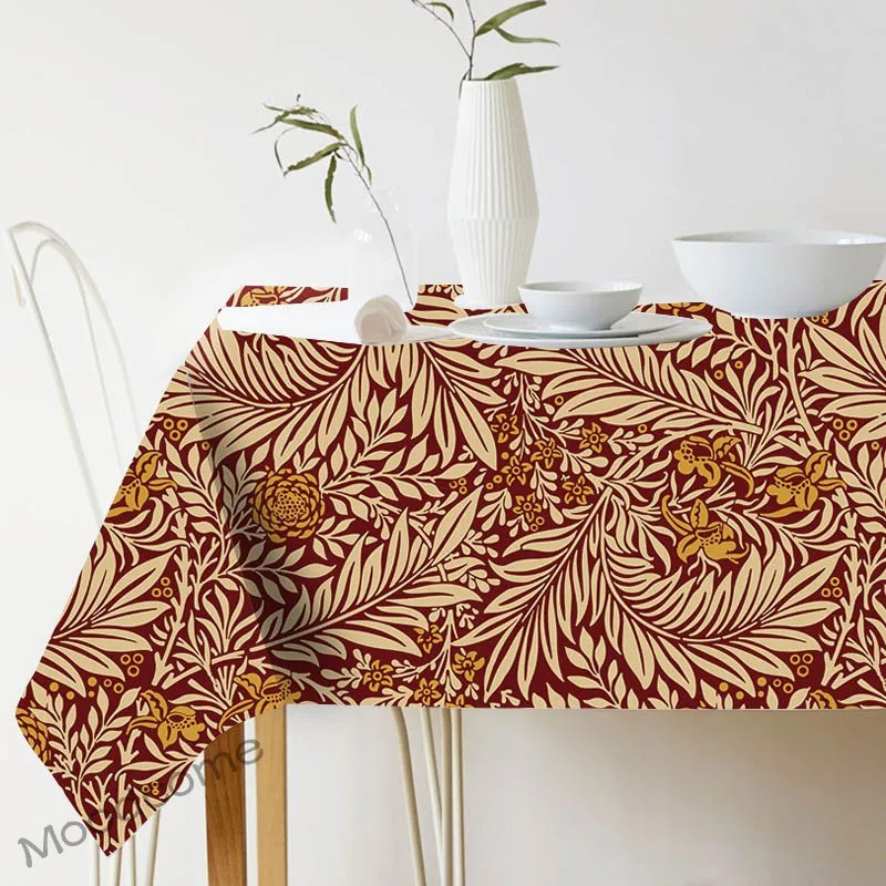Декоративная скатерть с изображением листьев Уильяма Морриса, фиолетового, красного, зеленого цветов