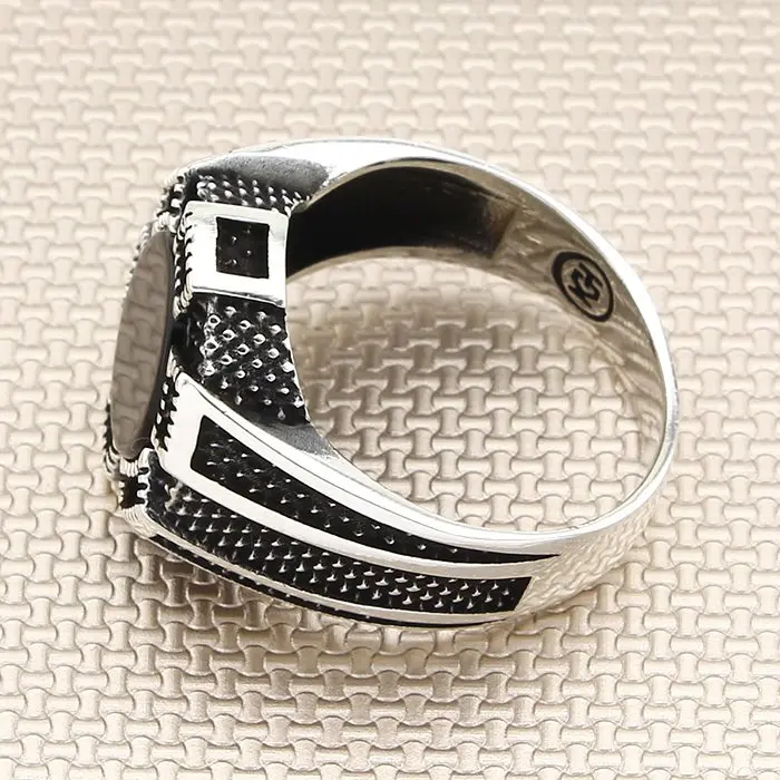 Мужское серебряное кольцо с Круглым Черным Ониксом, симметричный мотив, Сделано в Турции