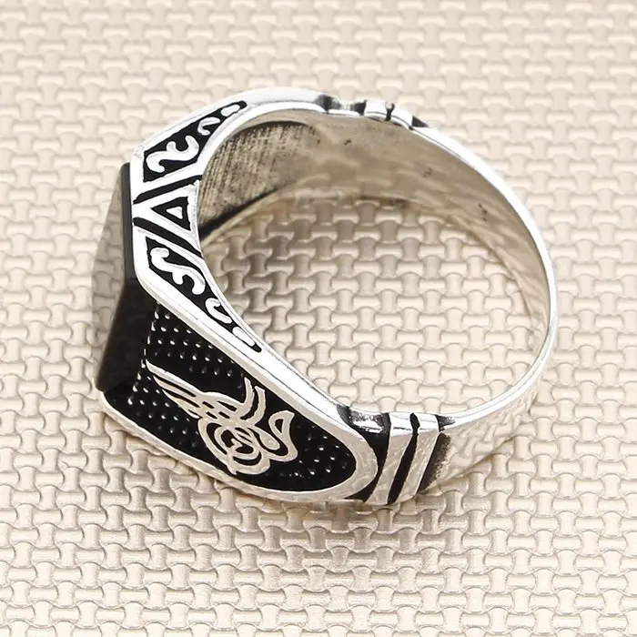 Квадратный черный оникс мужское кольцо с камнем с Османской тугры мотив Твердое Серебро 925 пробы аксессуары долговечная роскошь хорошее качество