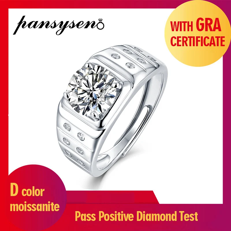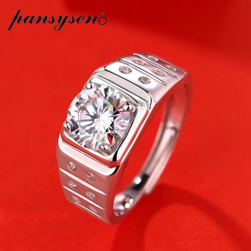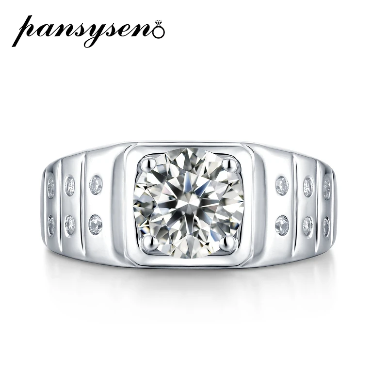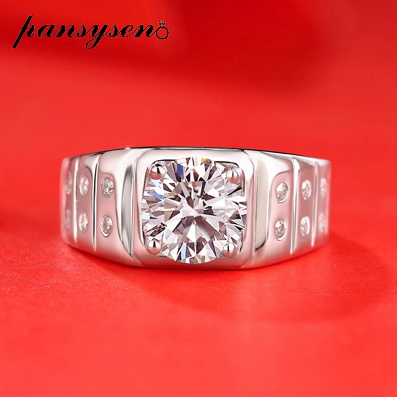 Мужское обручальное кольцо PANSYSEN, ювелирное изделие, круглой огранки, Муассанит, серебро 100% 925 пробы, 2 карата