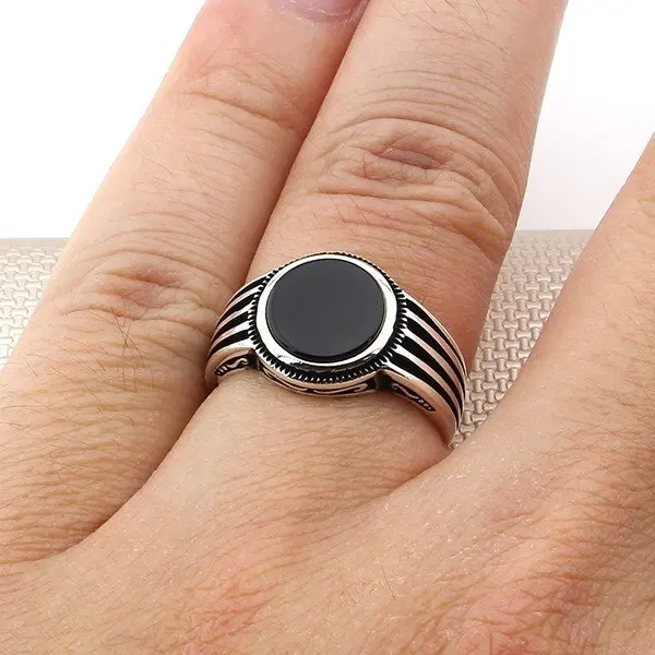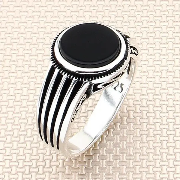 Мужское серебряное кольцо с Круглым Черным Ониксом, симметричный мотив, Сделано в Турции