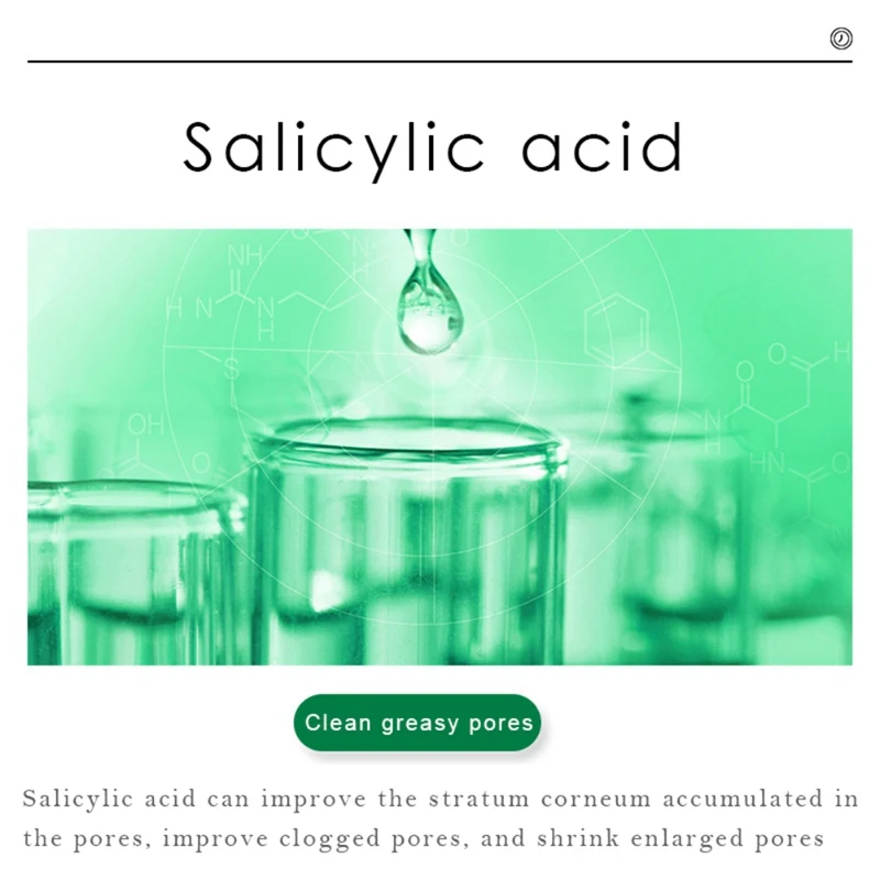 1. Салициловая кислота может улучшить роговой слой, накопленный в порах, улучшить закупорку пор и уменьшить увеличенные поры