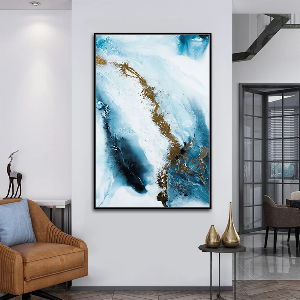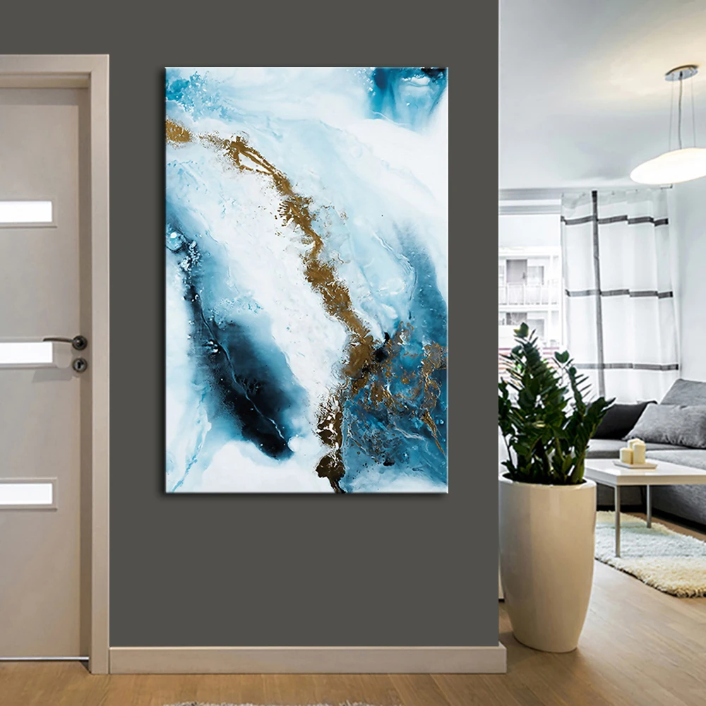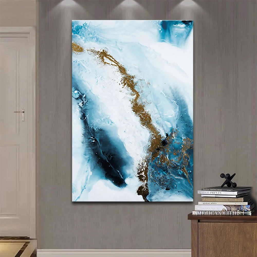 Mintura большой размер Ручная роспись Современная абстракция синяя Золотая картина маслом на канве Настенная картина для гостиной украшения дома