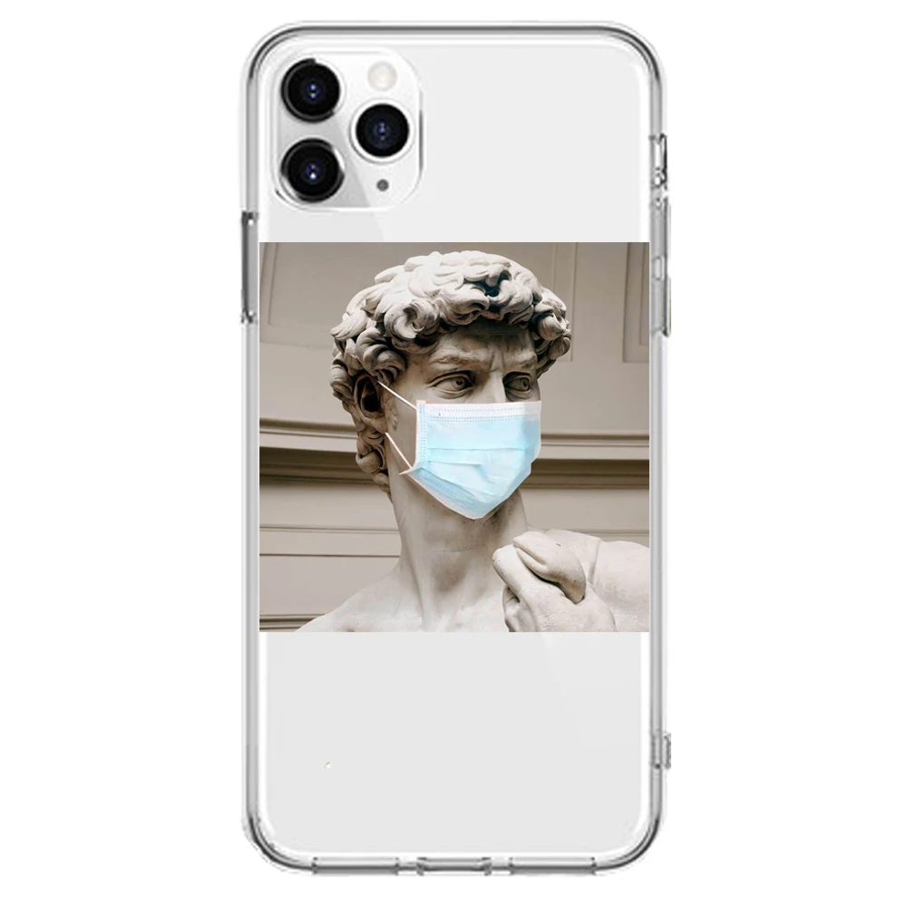 Мягкий силиконовый чехол для iPhone 12 mini, 11 PRO, MXA 5S, 6, 6s, 7, 8 Plus, X, XR, XS Max, с изображением Моны Лизы, Давида