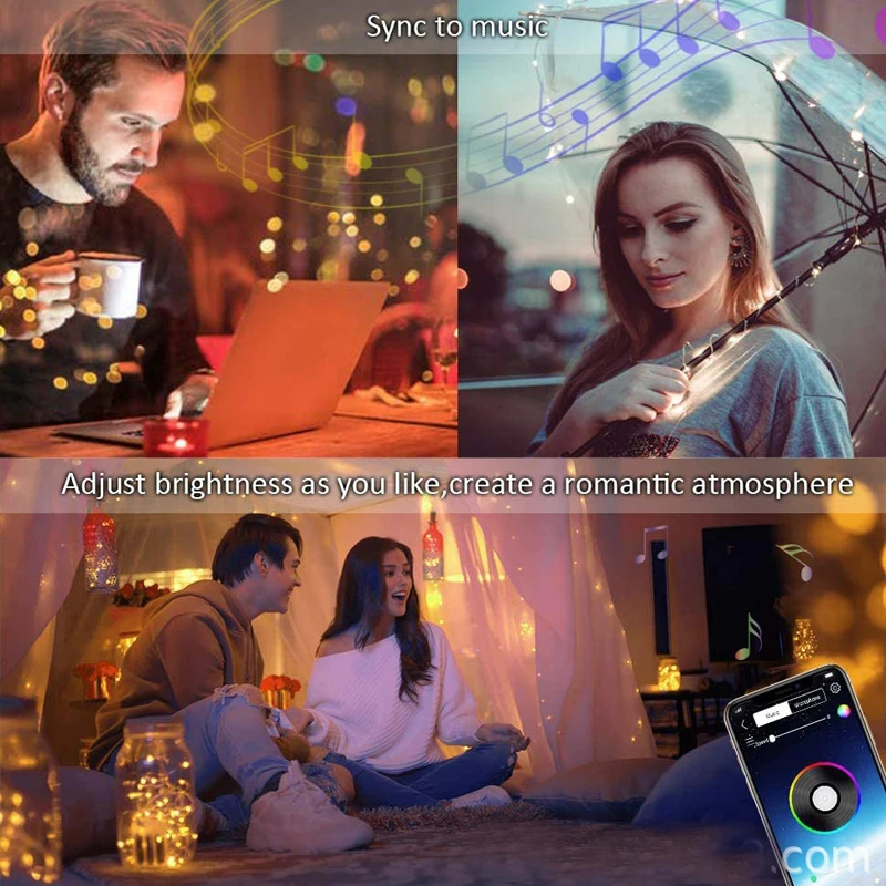 USB светодиодный светильник Bluetooth App Управление, медный провод, струнные лампы Водонепроницаемый для создания сказочной атмосферы на открытом воздухе светильник s для украшения рождественской елки