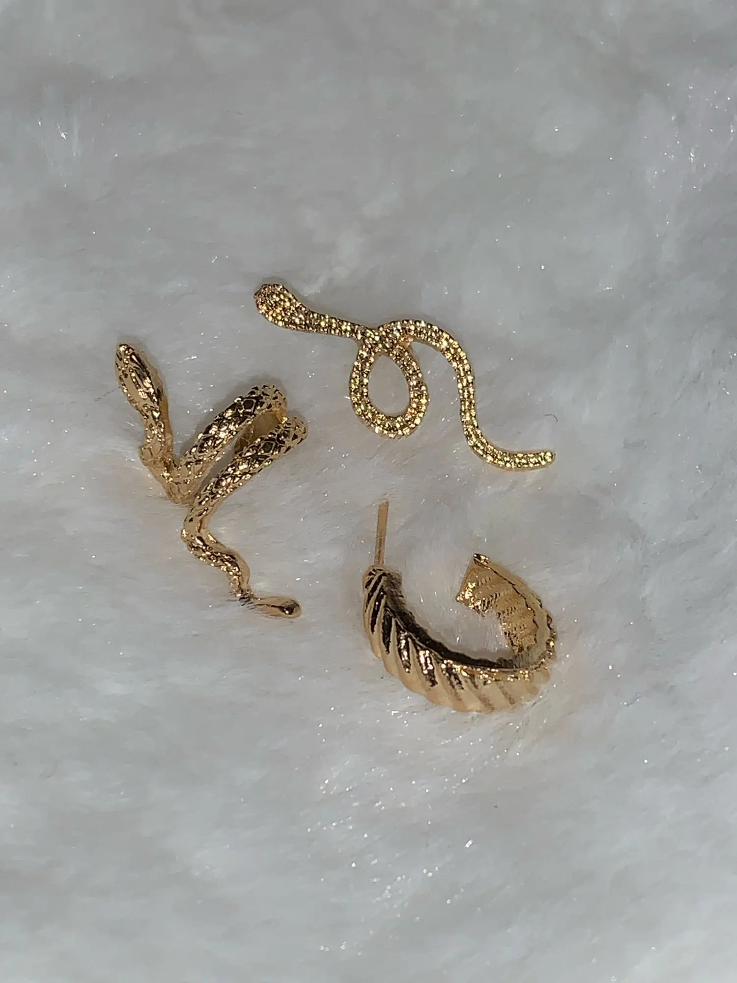 Цвет не совсем золотой, скорее с медным красным отливом. Если носить все 3 сережки вместе, смотрится странно и нелепо, в принципе набор приобрела только из за каффа, скорее всего только его и буду носить. До Москвы товар шёл больше 2 месяцев. С продавцом не общалась.