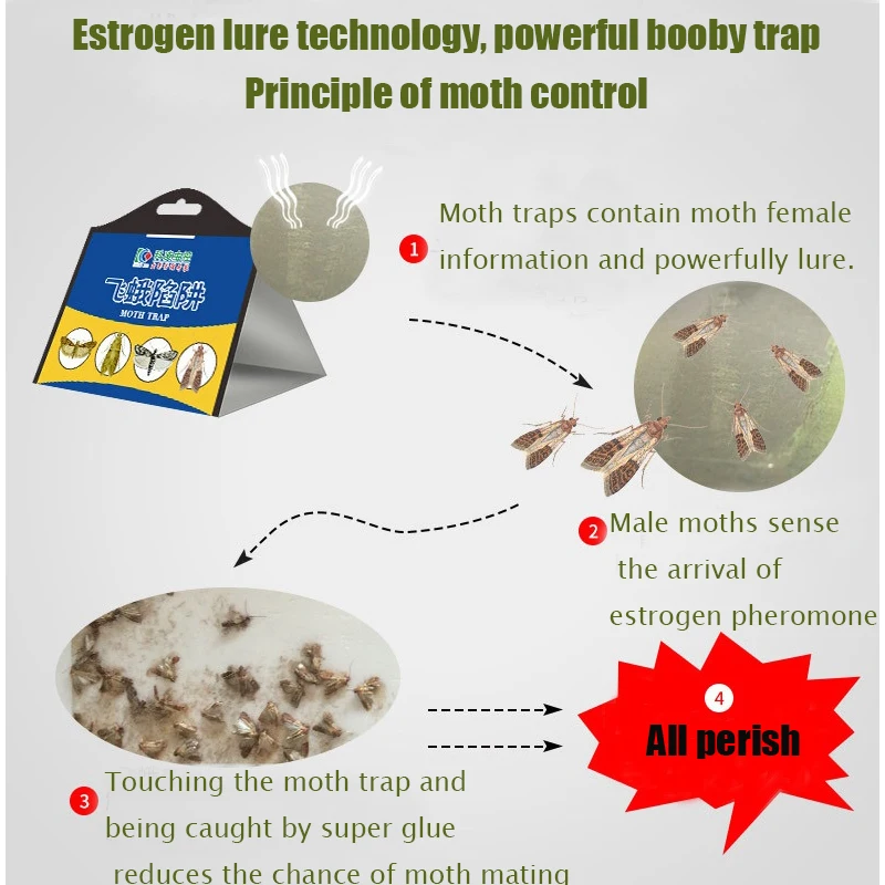 Прост в использовании! Просто откройте, очистите и сложите. Феромон Аттрактант уже смешан в клей. Никаких дополнительных продуктов не требуется. Место каждой ловушки моли длится 3 месяца.