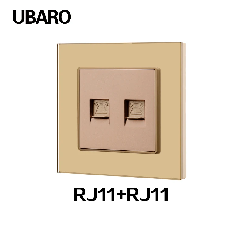 UBARO Золотая панель из закаленного стекла со слабым током RJ45RJ11TV сигнальные выводы настенная розетка для подключения универсальная домашняя розетка