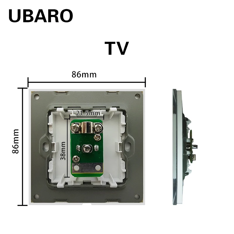 1. Подключение сигнала для компьютера, телефона, телевизора2. Продукт должен быть установлен профессиональным электриком.3. Он широко используется во многих местах, таких как: отель, ресторан, дом, общественные места.4. Материал: панель с гнездом из закаленного роскошного кристального стекла, водонепроницаемый, ПК огнеупорный чехол.5. Цвет: белый/золотой/черный.6. Квадратная Модель: 86*86.7. Размер панели: 86x8 6 мм/3,39x3,39 дюйма8. Упаковка в коробке: 1 шт. + 2 винта.