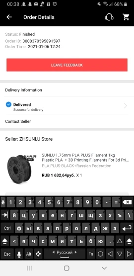 Страна: FR Color: PLA PLUS-BLACK Ships From: Russian Federation Доставка: Seller's Shipping Method - RU 27.01.2021