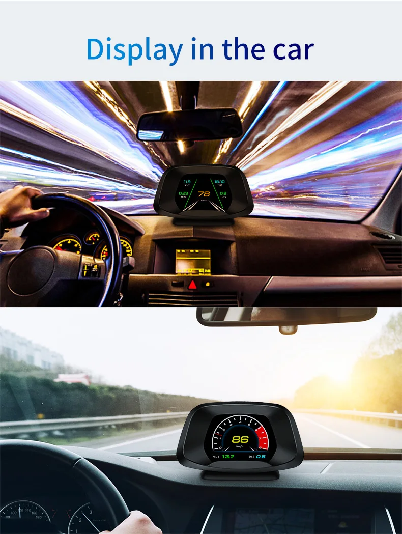 Информация на дисплее: скорость транспортного средства, температура воды, напряжение, расход топлива, обороты в минуту, один пробег, общий накопительный пробег, время в пути, время работы системы, давление на входе, температура масла, соотношение воздушно-топливное отношение, давление Турбины, давление на входе, тест на ускорение, испытание тормозов, считывание потока данных.