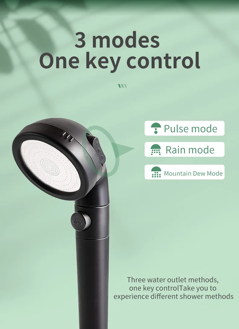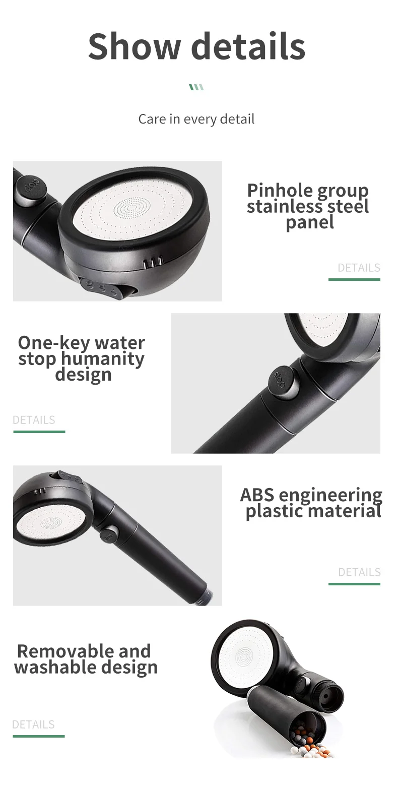 Прямая поставка ссылка Чжан Цзи новый черный фильтр шары спа душевая головка с кнопкой стоп 3 режима Регулируемая Замена душевая головка