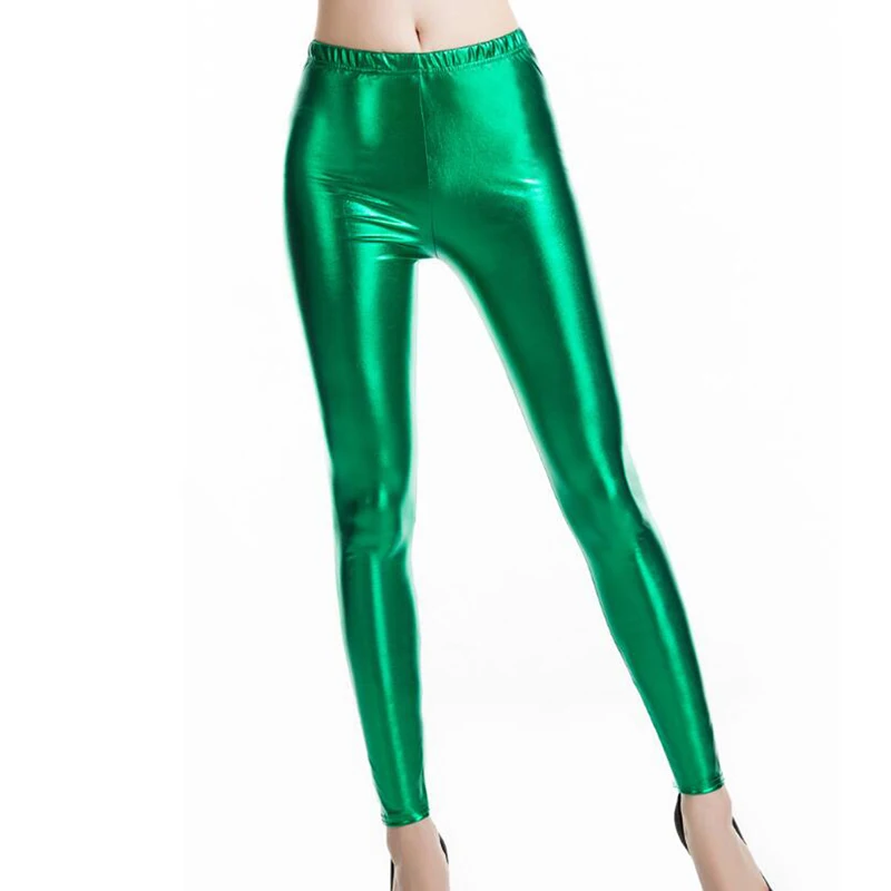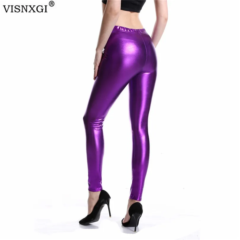 Женские блестящие облегающие леггинсы VISNXGI из искусственной лакированной кожи, блестящие золотистые брюки-карандаш с завышенной талией для спортзала в стиле панк с эффектом пуш-ап