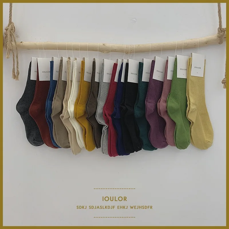Однотонные повседневные женские носки, Осень-зима, теплые длинные женские винтажные уличные хлопковые мягкие милые японские носки Kawaii