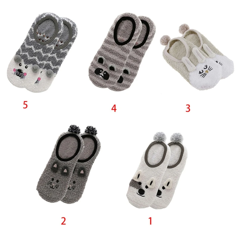 1 пара Женские зимние пушистые теплые тапочки носки с забавными мул...