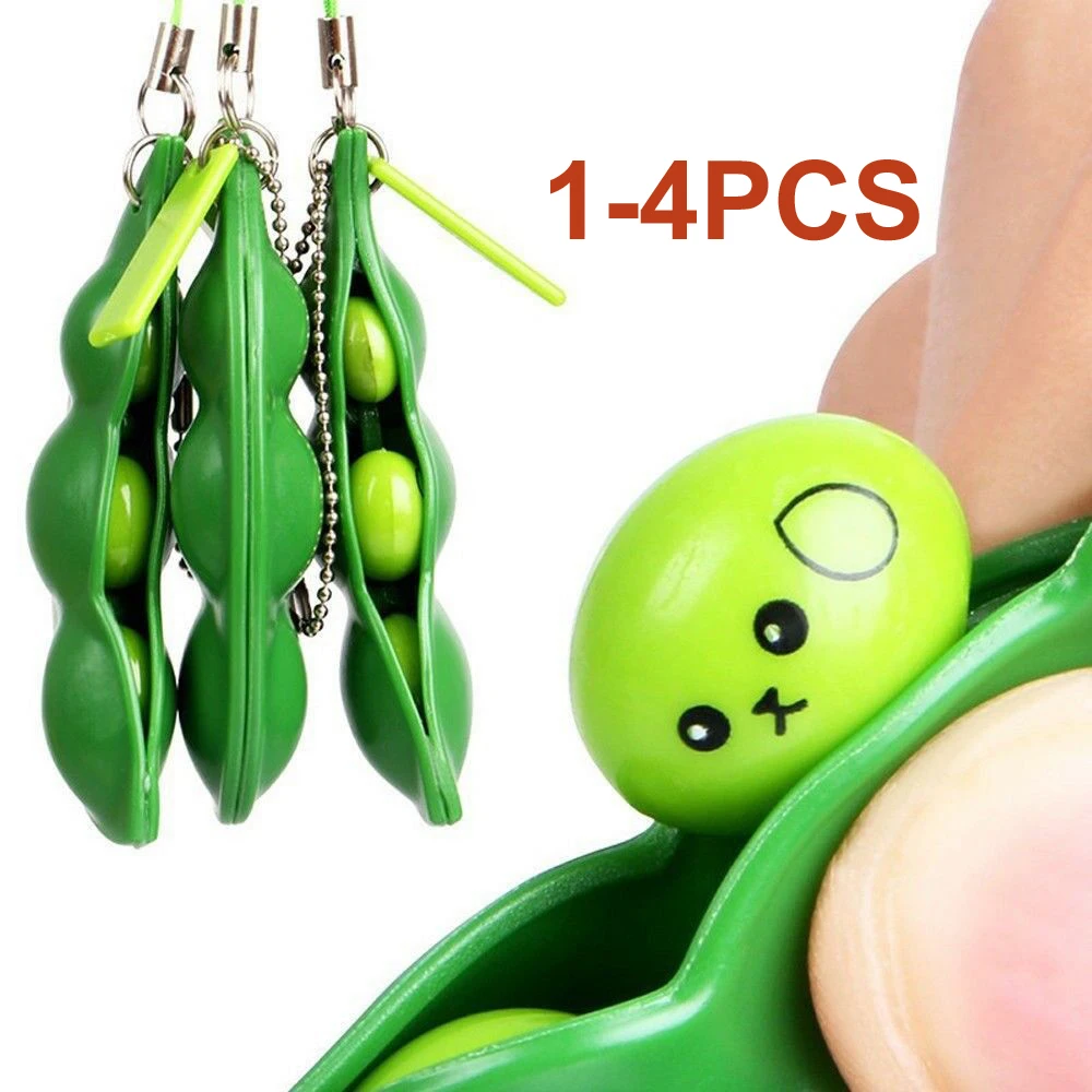 Сжимаемый горох в стручке, брелок для ключей, симпатичная игрушка-антистресс для взрослых