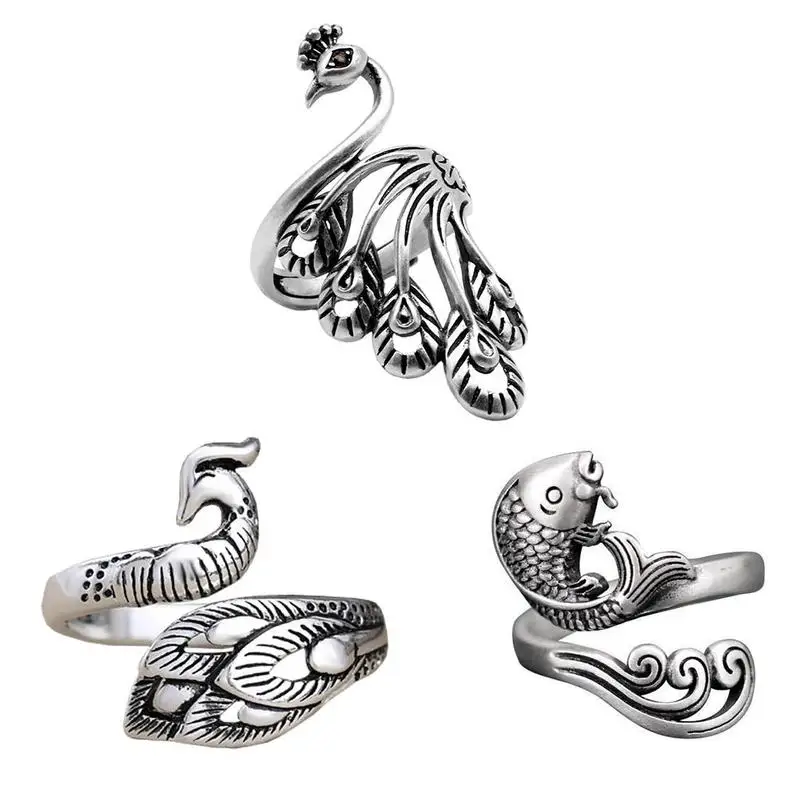 13 шт., регулируемые вязаные кольца в форме карпа, рыбы, павлина