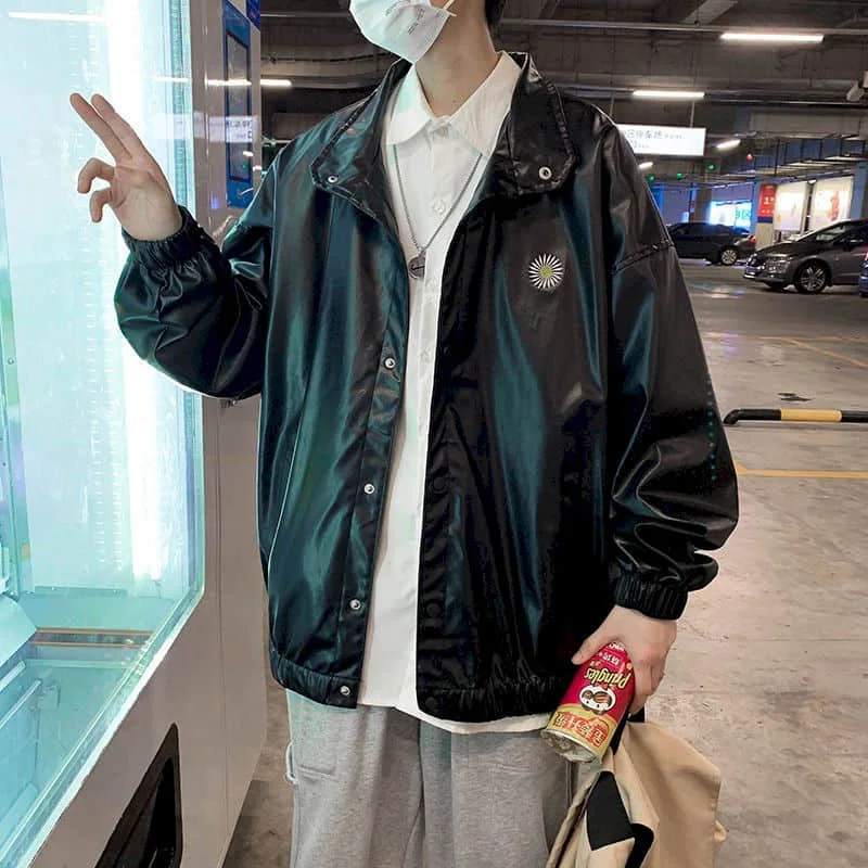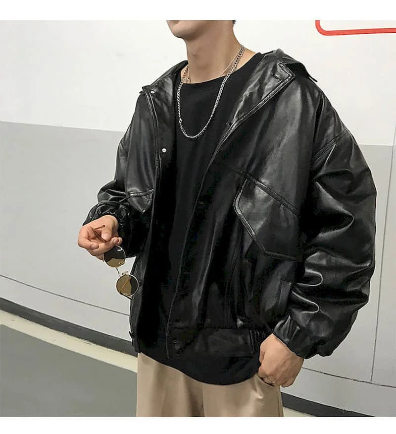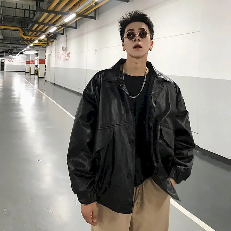Кожаная мужская куртка бомба, уличная мотоциклетная одежда, весна-осень, свободная куртка, Корейская бейсбольная форма, повседневная куртка