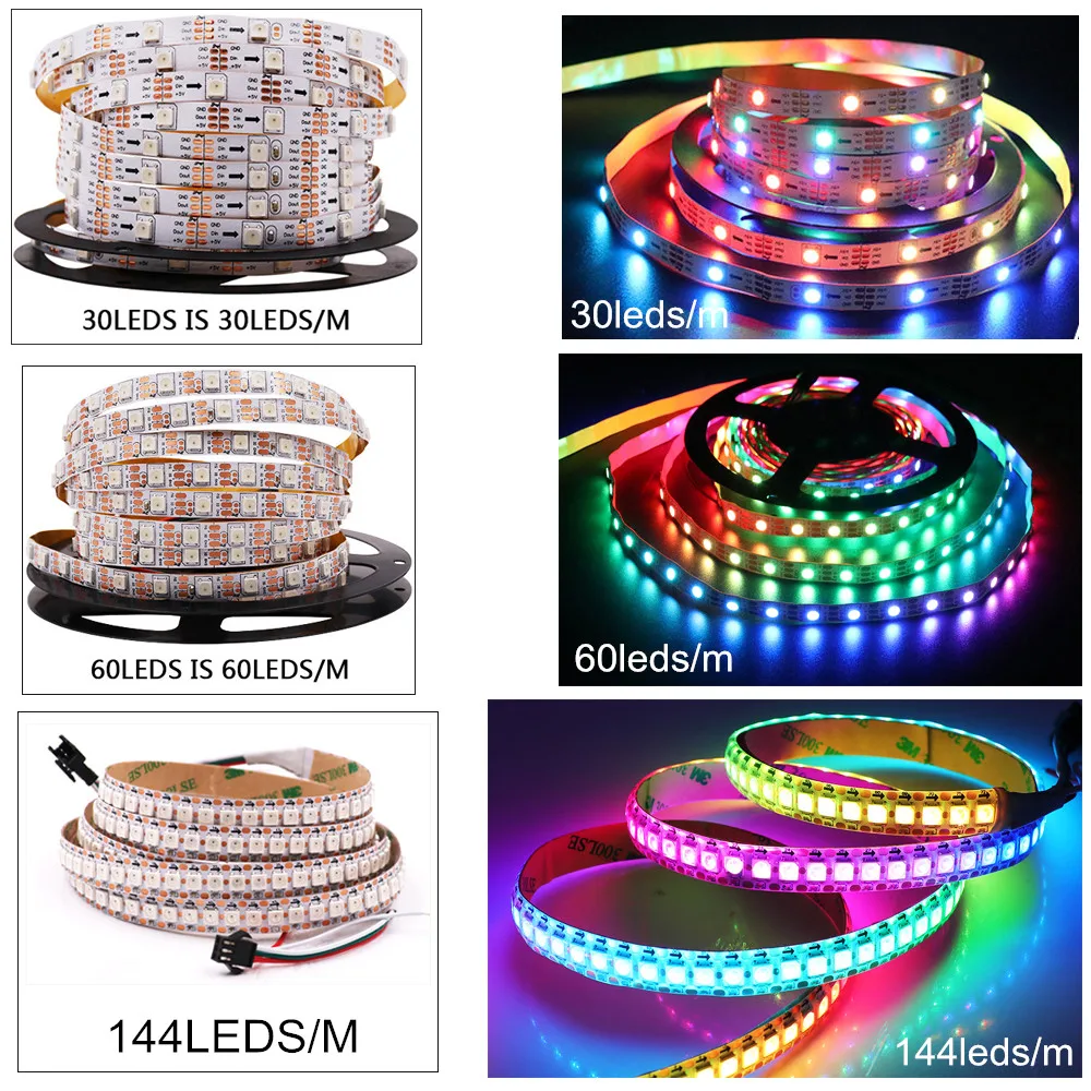Светодиодная лента WS2812B, 5 в постоянного тока, 5050 RGB, полноцветная, 1 м3 м5 м, 3060144 пикселейсветодиодовм, умная светодиодная Пиксельная лента, светодиодная лампа WS2812 IC
