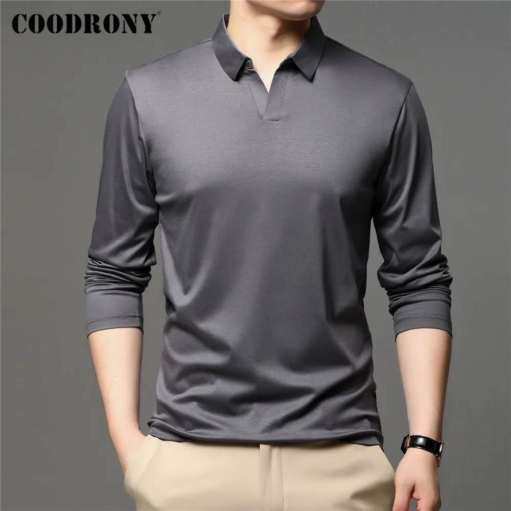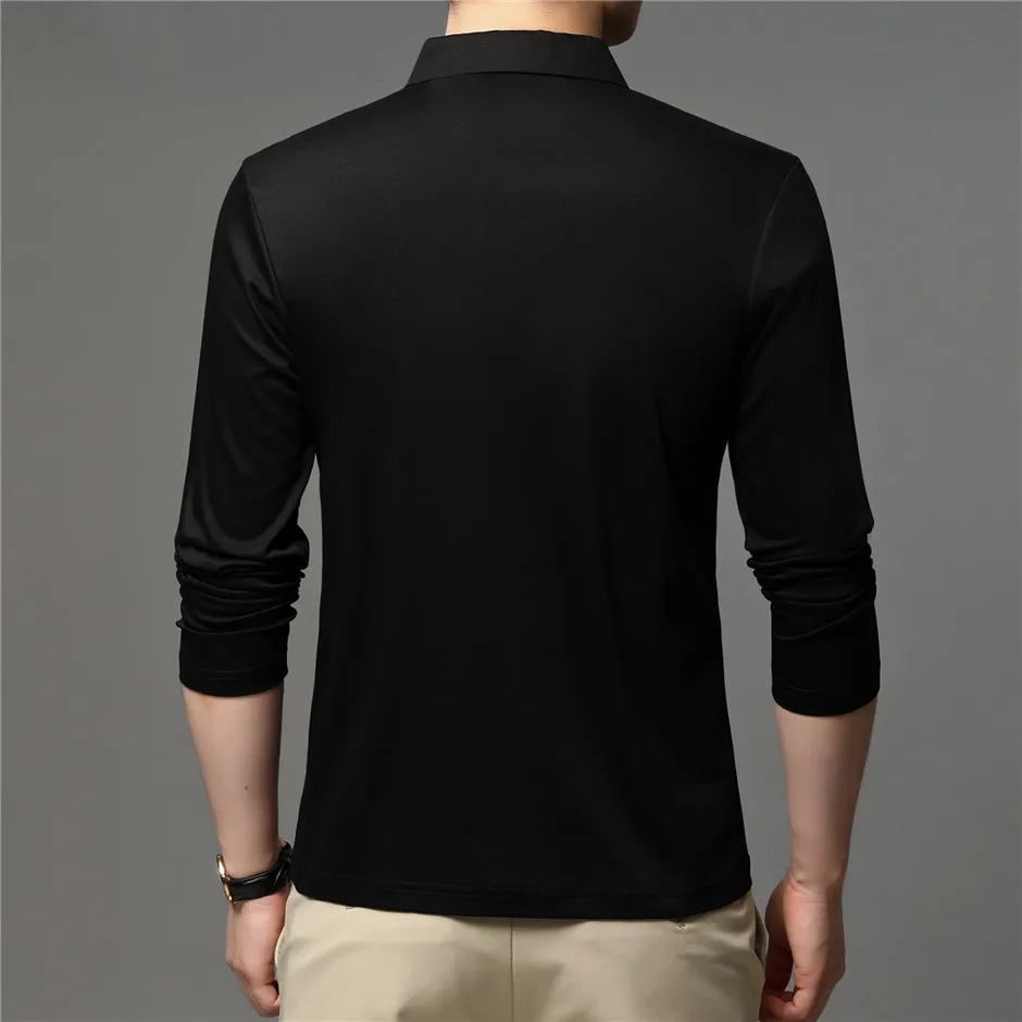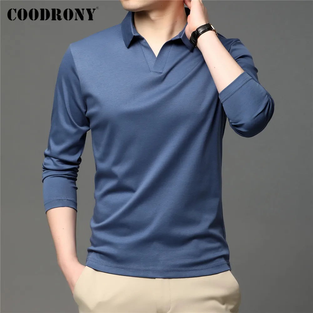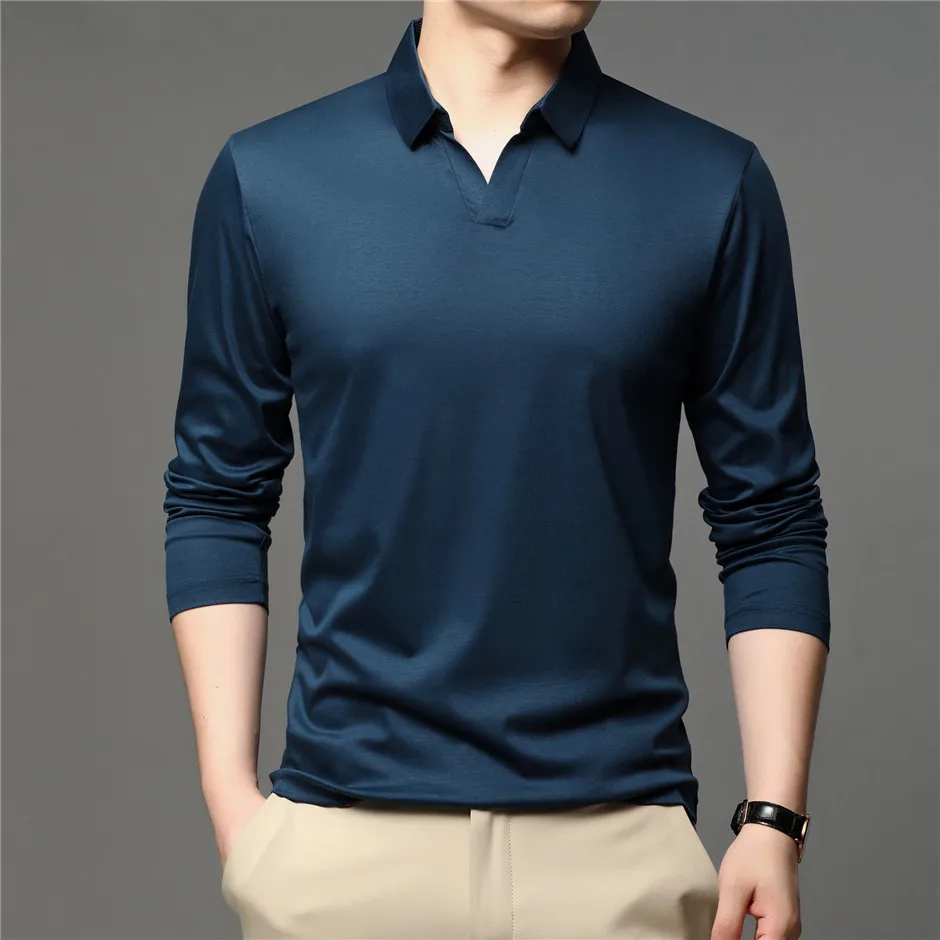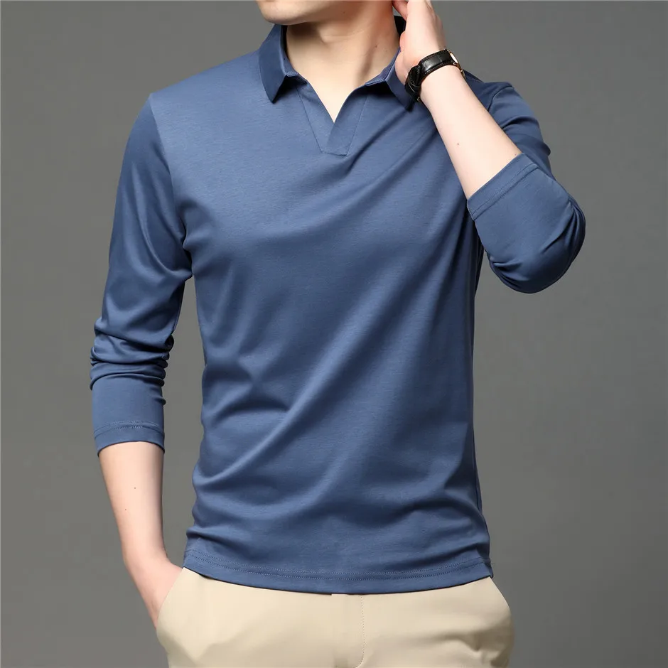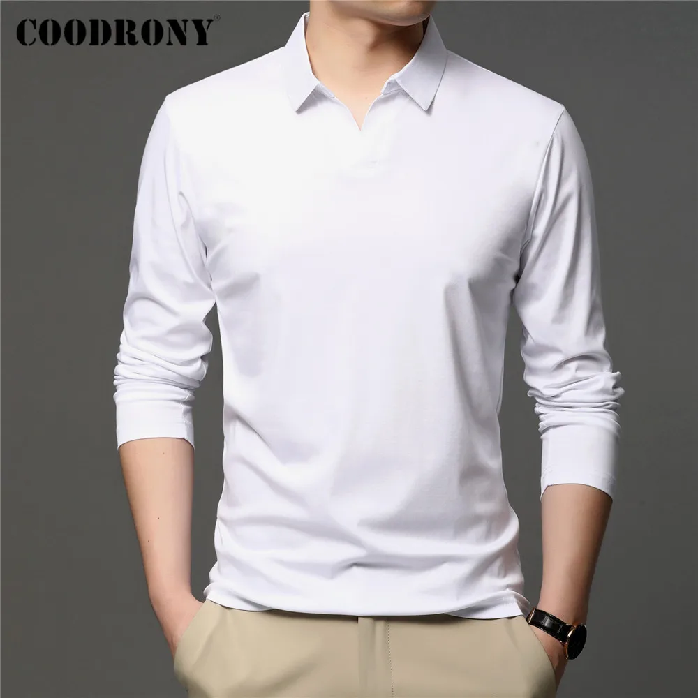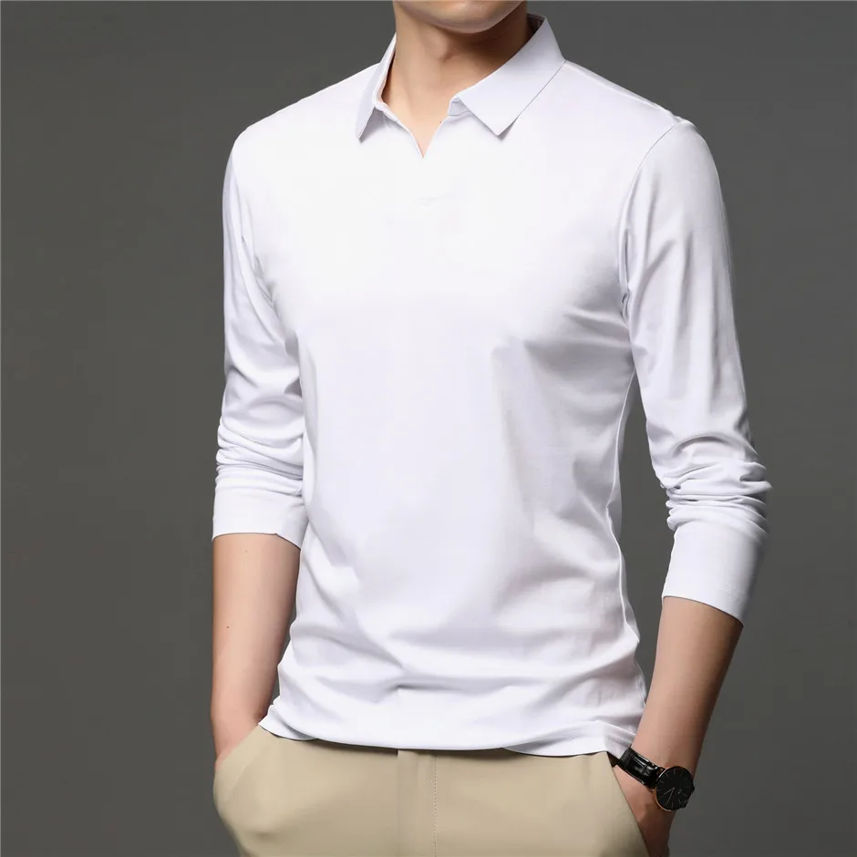 Мужская хлопковая рубашка-поло, с длинным рукавом и воротником, C5047, весна-осень