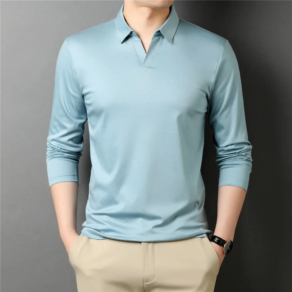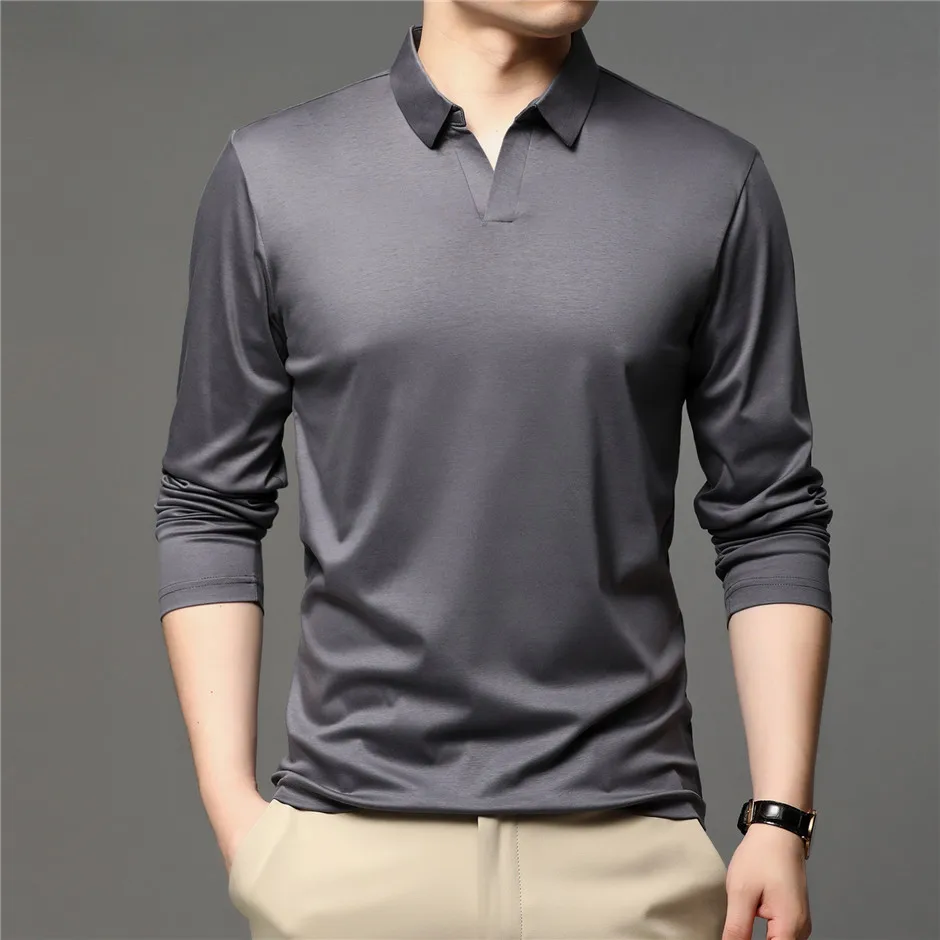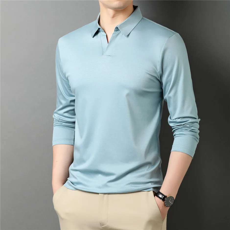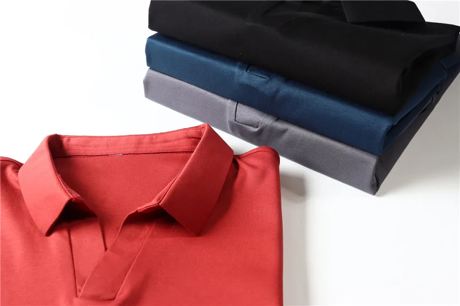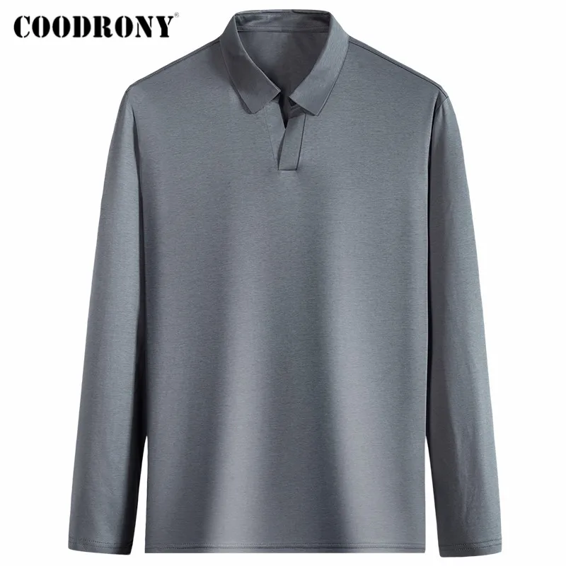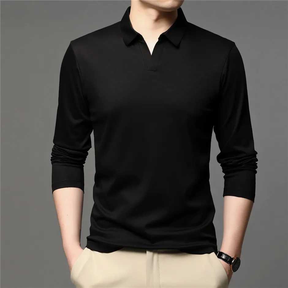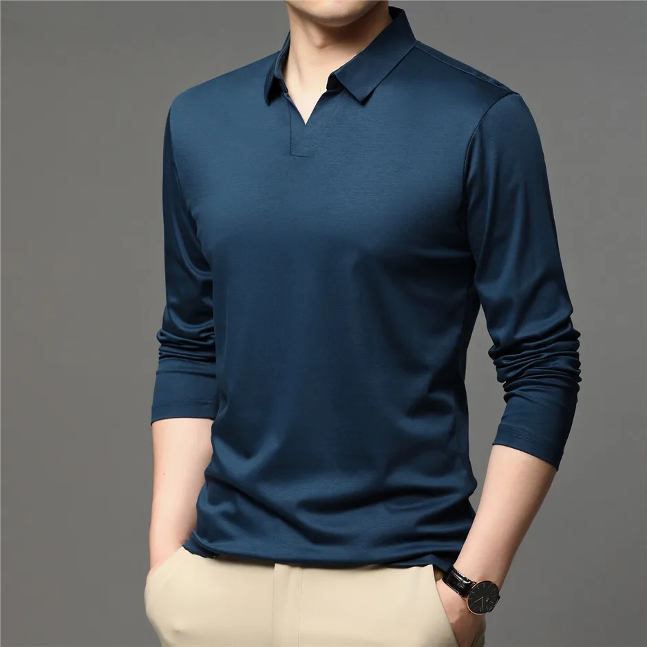 Мужская хлопковая рубашка-поло, с длинным рукавом и воротником, C5047, весна-осень