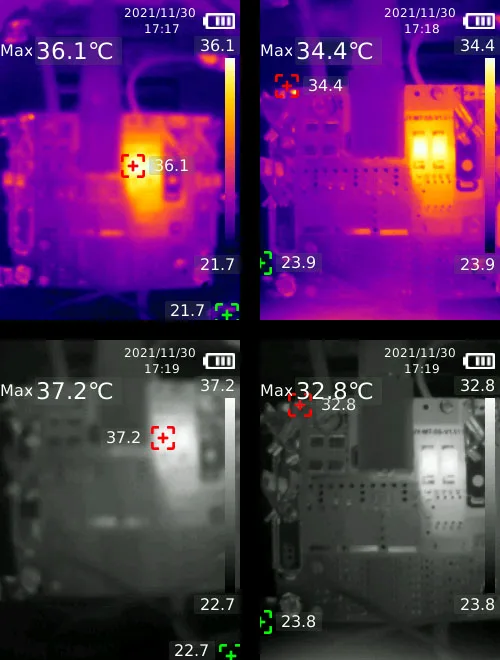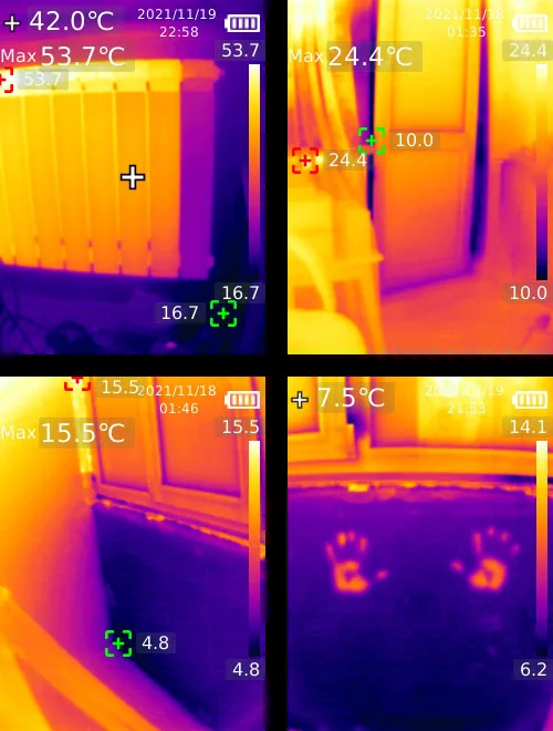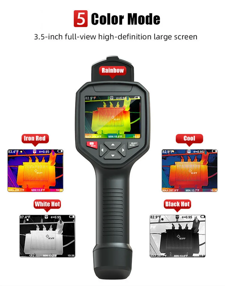 По той цене, по которой я купил эту камеру, я искренне поражен качеством разрешения камеры. Пока я только тестировал его и еще не использовал для диагностики, но я уже впечатлен некоторыми функциями. Мне нравится, что всегда есть 2 курсора, которые показывают самую горячую и самую холодную точку просматриваемой области. Еще мне нравится, что есть 5 разных цветовых палитр. Лично мне больше всего нравится использовать цветовую палитру радуги, поскольку она имеет самый разнообразный набор цветов и позволяет легко различать температуру каждого объекта. Тем не менее, также здорово иметь возможность выбирать из других вариантов, и я уверен, что у других людей есть свои предпочтения.