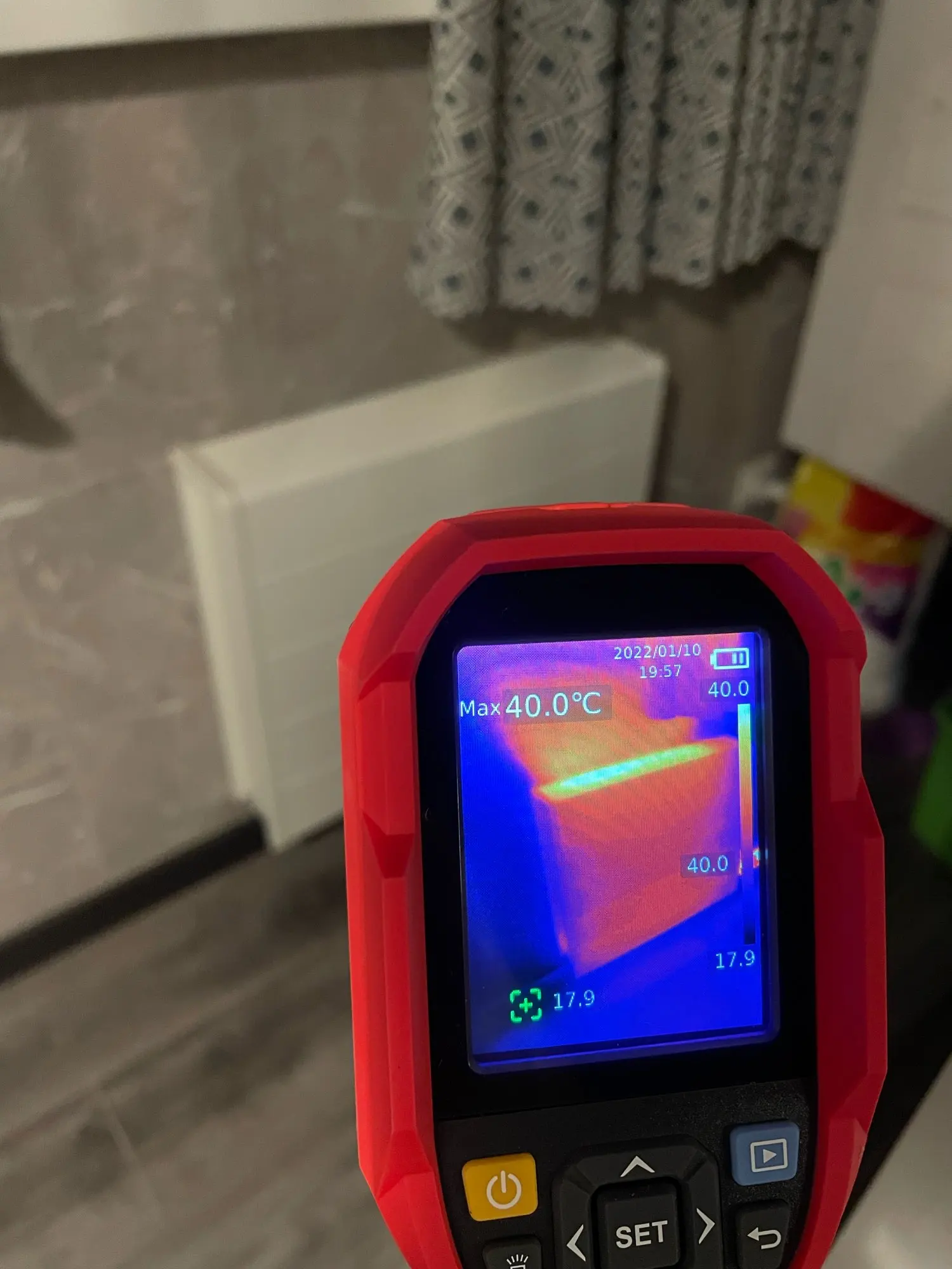 Эта вещь Слишком веселая! Наш дом имеет излучающий нагрев и много уровней. Поэтому я хотел дважды проверить, где трубы были разложены для уровней наверху. Отлично работает! Это работает для многих вещей, внутри temps, утечки воздуха вокруг окон и т. Д. Он также имеет слот Micro SD (также поставляется с картой), чтобы вы могли записывать изображения.