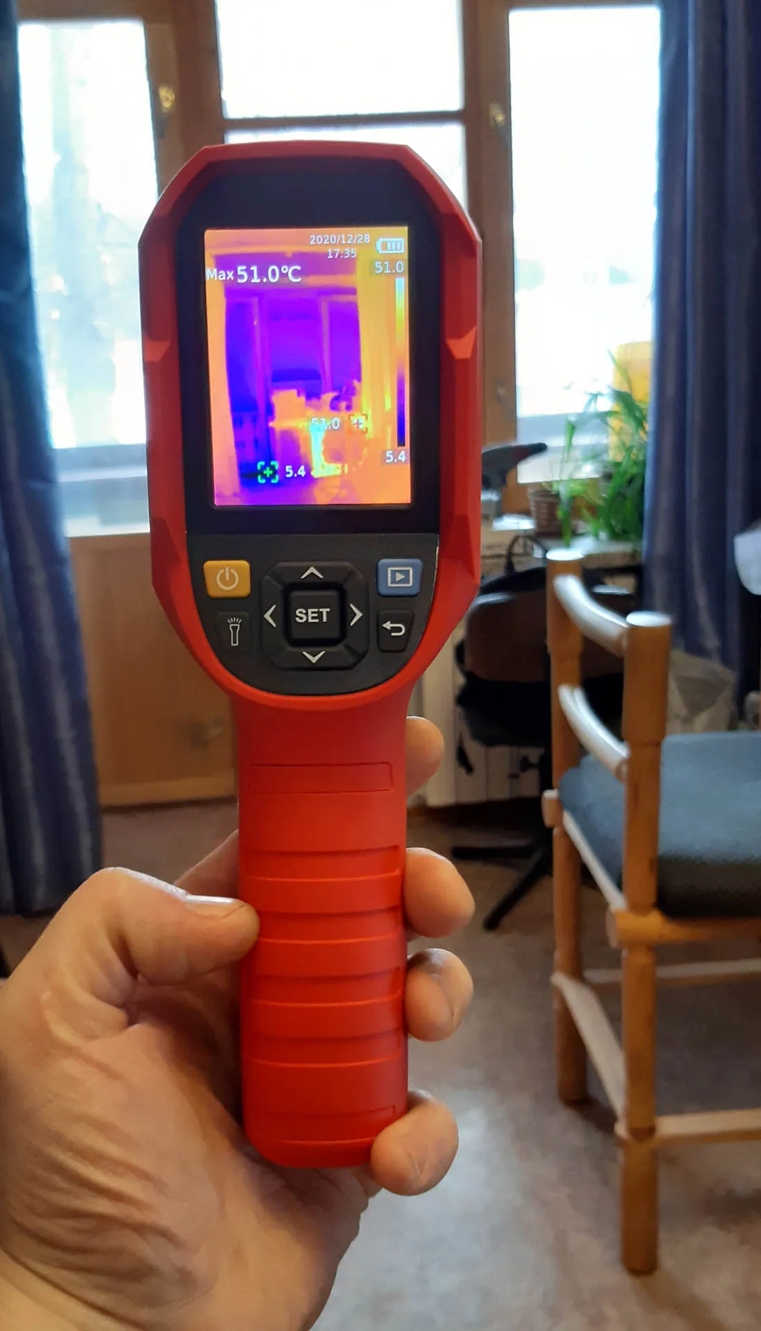 Заказывал на распродаже 11.11. С промокодом вышло в 16900 руб с поставкой из России (пошлину не платил). Заказывал UTi260B, но продавец предложил RX-600. Т.к. разницы между ними нет, то сразу согласился. Родной кейс не брал - дорогой и большой по размерам. По советам с Муськи взял чехол/кофр от блютус-колонки (Anker Soundcore Motion+, 600 руб). Поролонку вырезал из родной коробки. Применение. Сразу обнаружил косяк в одной батареи отопления - завоздушивание 1 секции. Неутепленная (пока) лоджия. На уличном фото - до дома напротив 130 метров. На последнем фото: слева - фото без линзы, справа с фокусной линзой 101.6мм. Без линз минимальное фокусное 25 см, что для контроля электроники много, так что линзы нужны. Итог - отличный девайс. Рекомендую.