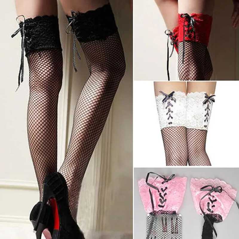 Сексуальные чулки для женщин до бедра прозрачные кружевные ажурные чулки трикотаж дамские красные черные белые ажурные сетчатые чулки