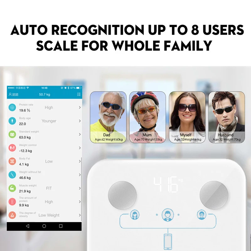 Bluetooth BMI весы для тела, светодиодный, цифровой, умный, вес, весы для тела, жир, состав, анализатор, весы для ванной