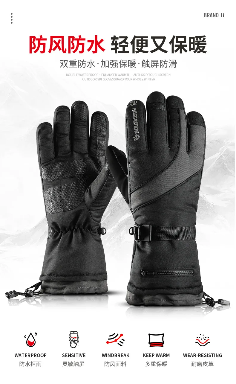 Мужские лыжные перчатки для сноуборда Зимние перчатки для езды на снегоходе мотоцикле ветрозащитные водонепроницаемые зимние перчатки унисекс