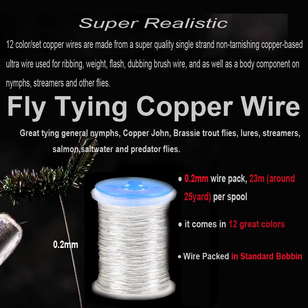 Bimoo 12 цветовкомплект, материал медной проволоки для вязания мушек, кисть для вспышки, приманки, Нимфа, стример, форель, мухи, лосось, проволока