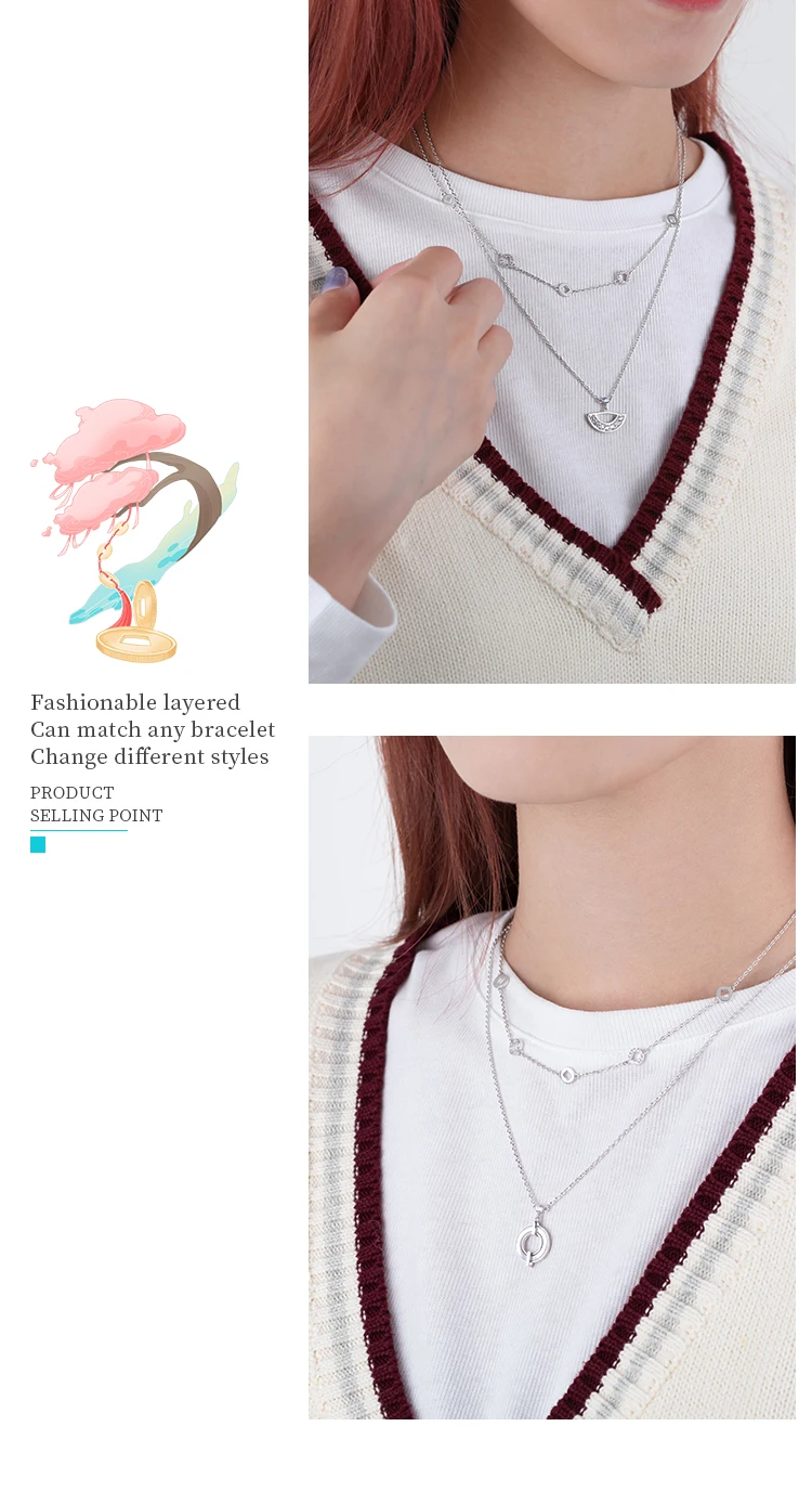 Женское серебряное ожерелье Thaya, ожерелье с подвесками в китайском стиле с розовым кристаллом, 45 см, Подарочная бижутерия