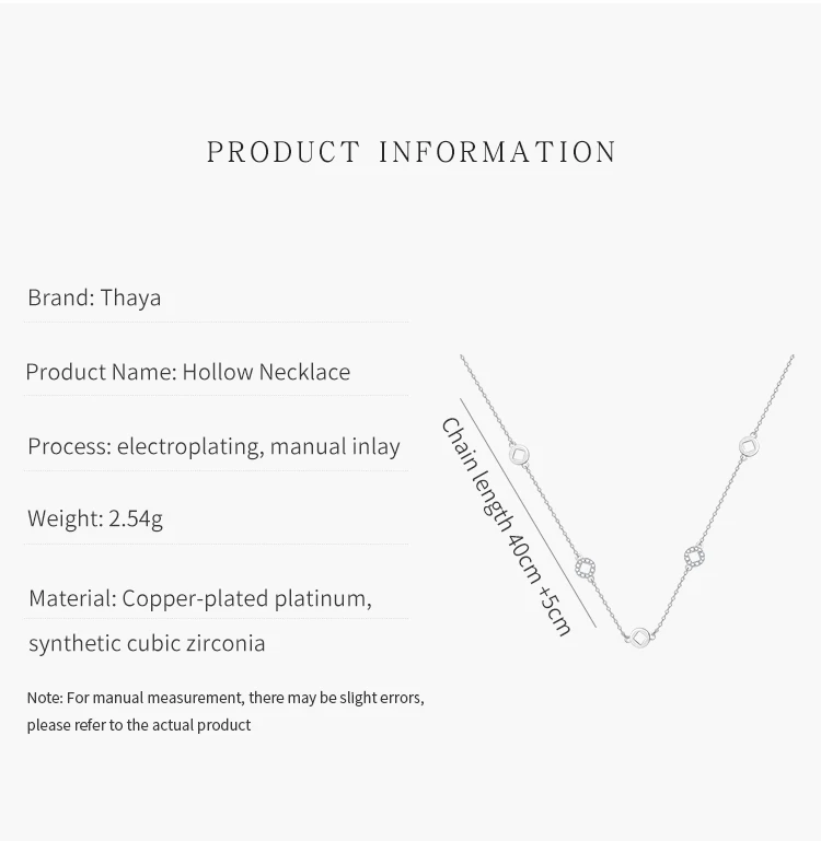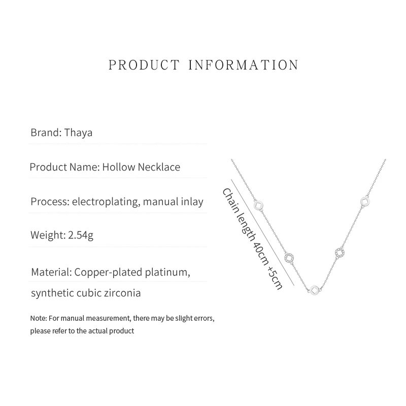 Бренд: Thaya Название продукта: полое ожерелье Материал: платина с медным покрытием, синтетический фианит Процесс: Гальваническое покрытие, Ручная инкрустация Вес: 2,54 г Длина цепочки: 40 см + 5 см Примечание: При ручном измерении возможны незначительные погрешности, пожалуйста, обратитесь к фактическому товару